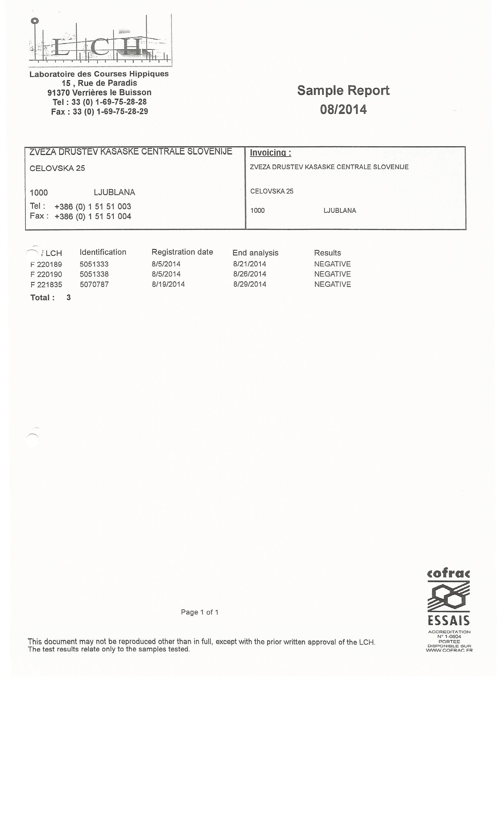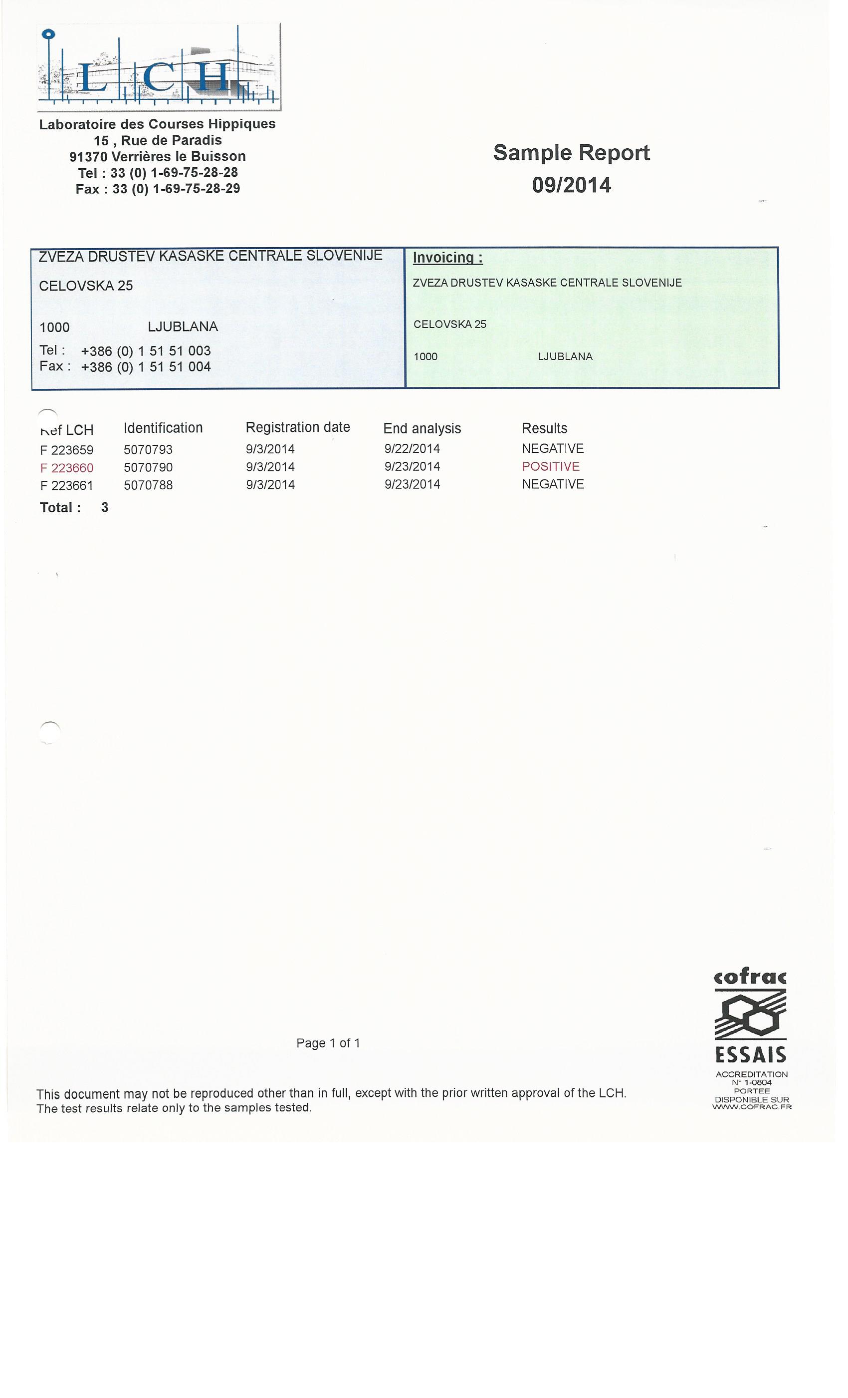 Objavljamo rezultate doping testov od aprila do konca avgusta.
