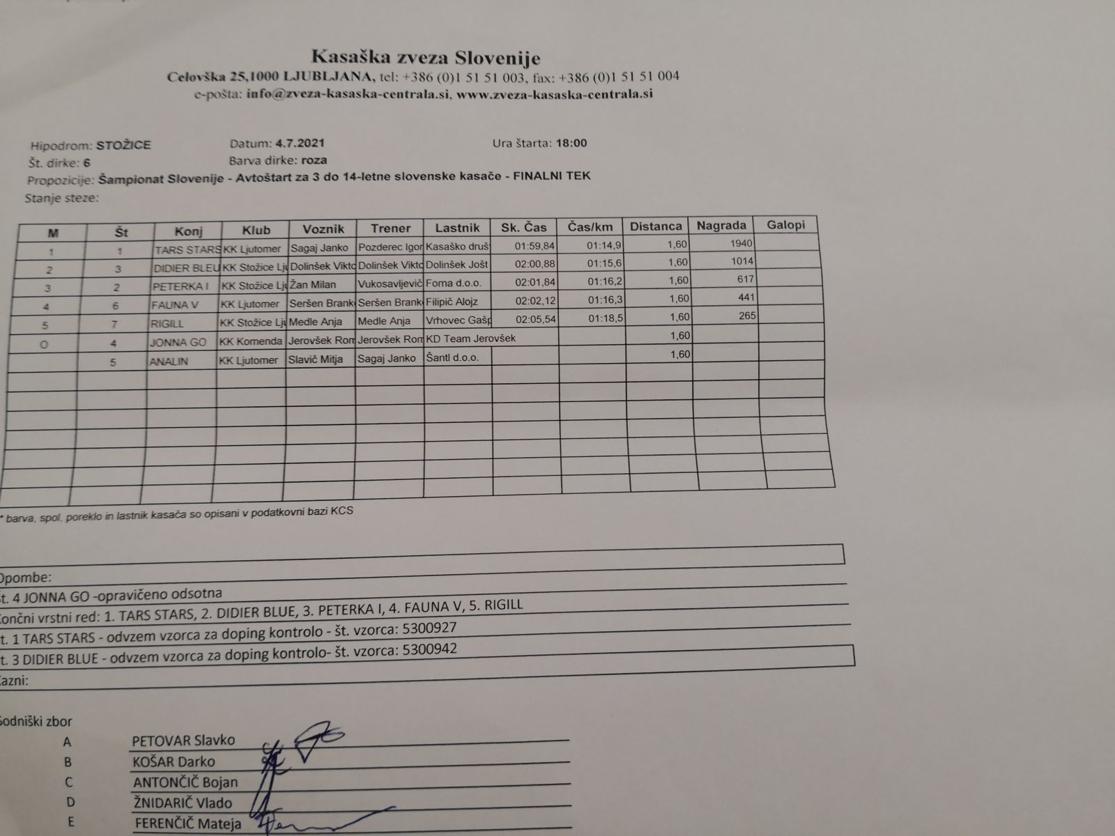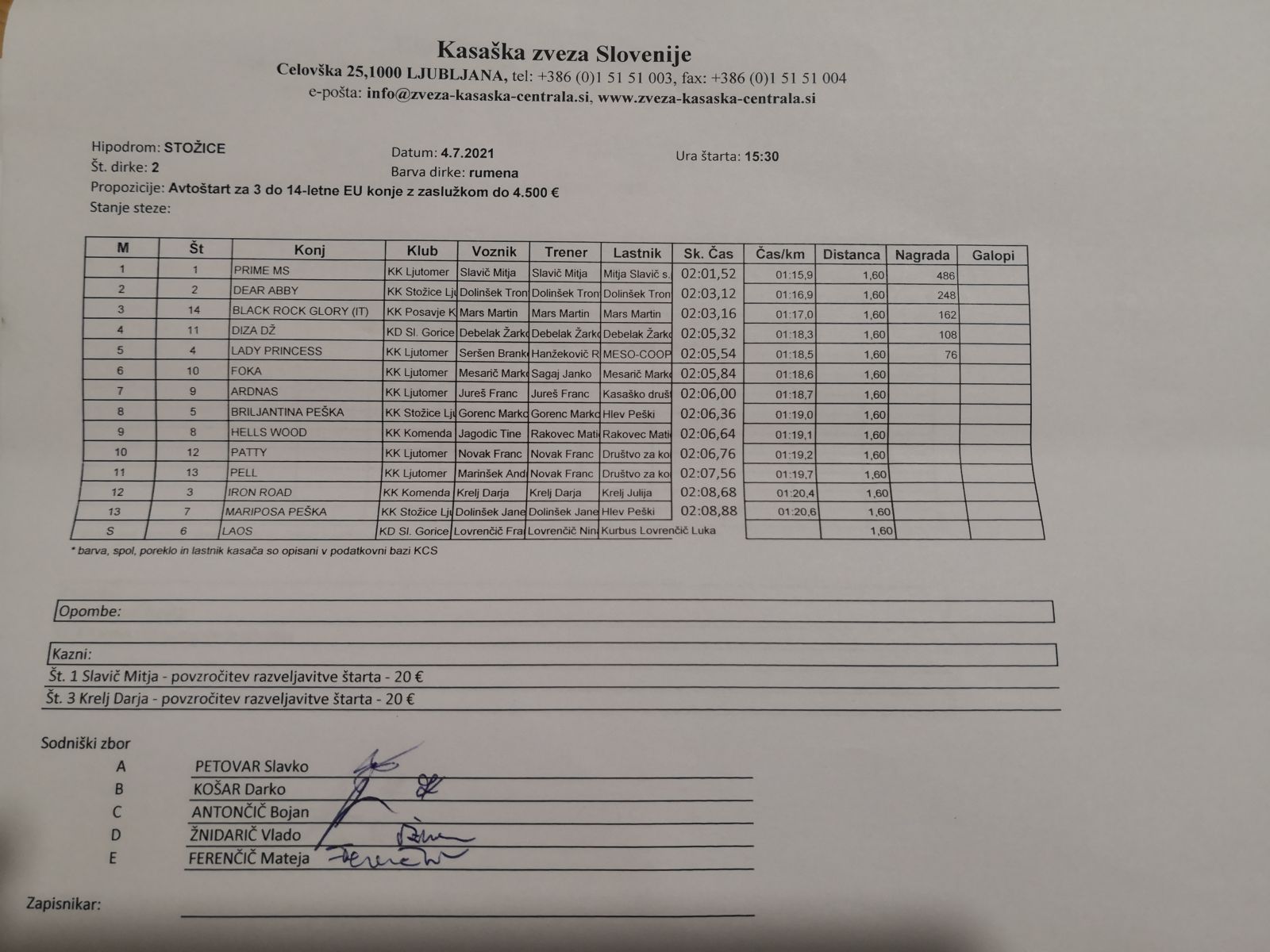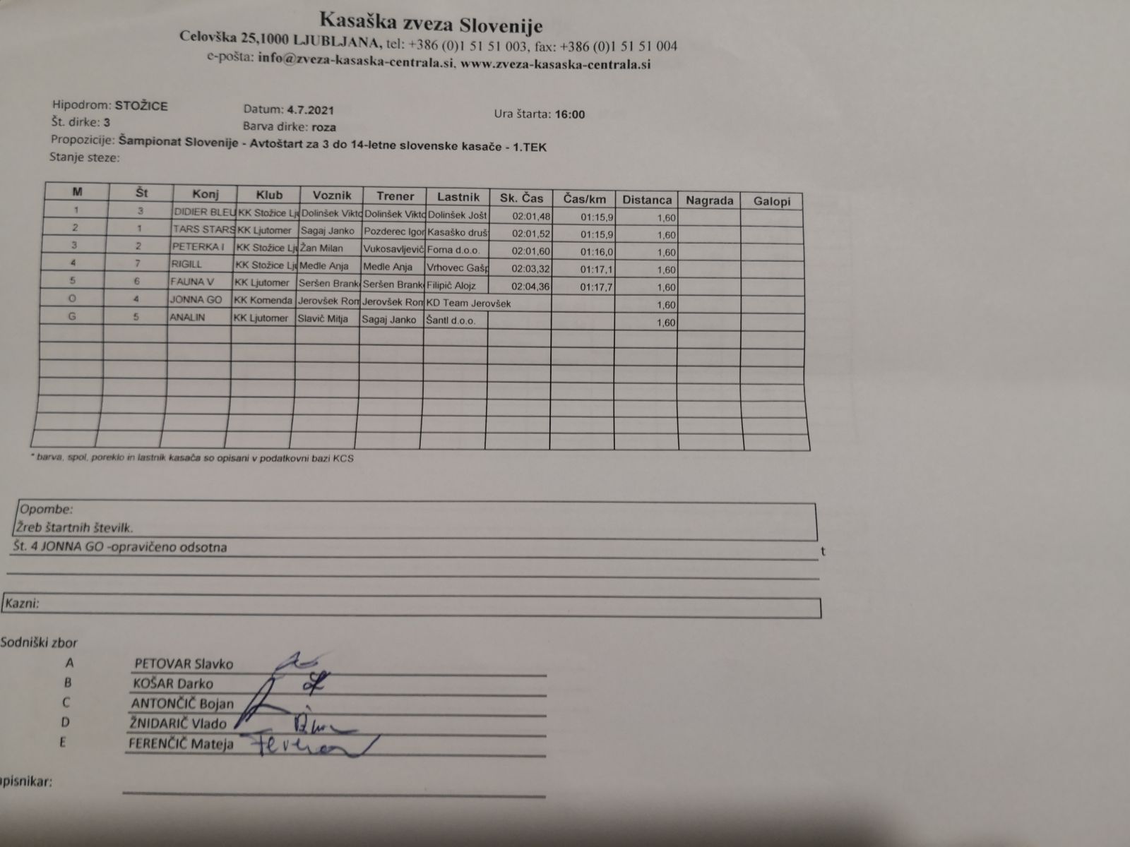 Na spodnjih povezavah najdete sodniške zapisnike dirk iz Stožic, 4. 7. 2021.