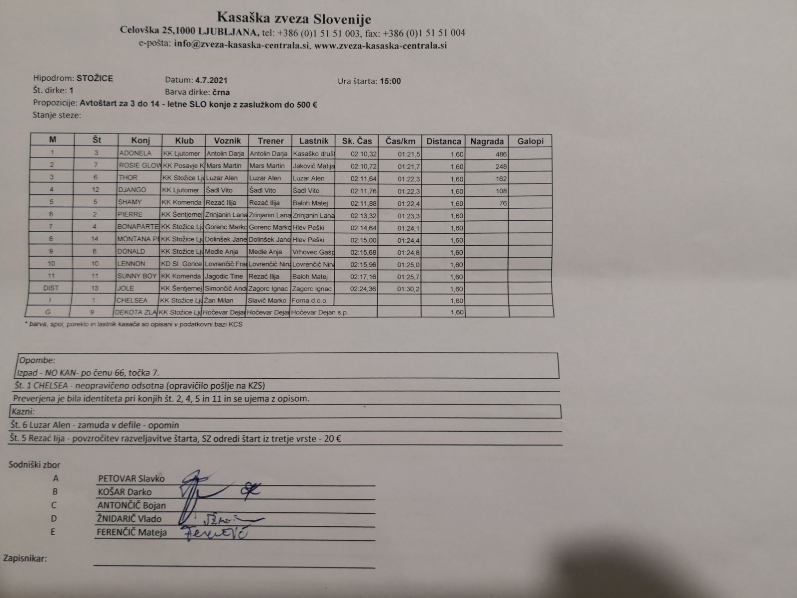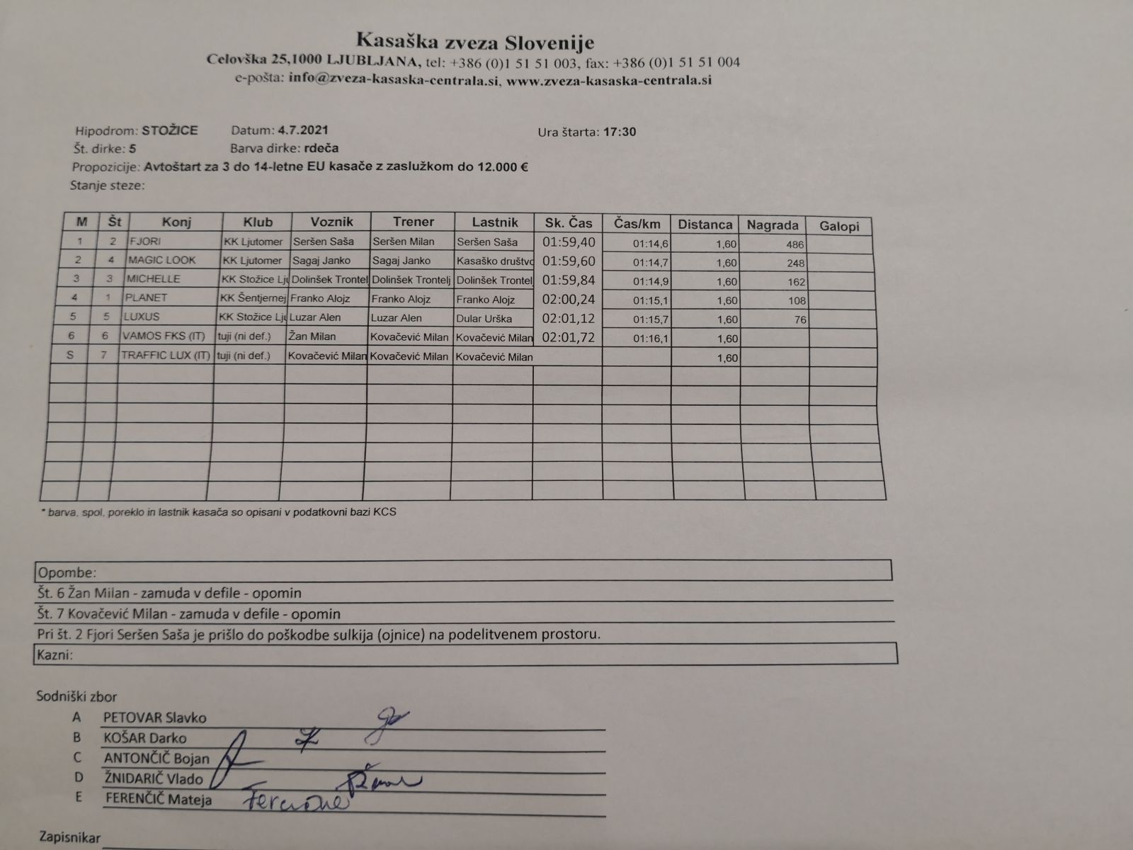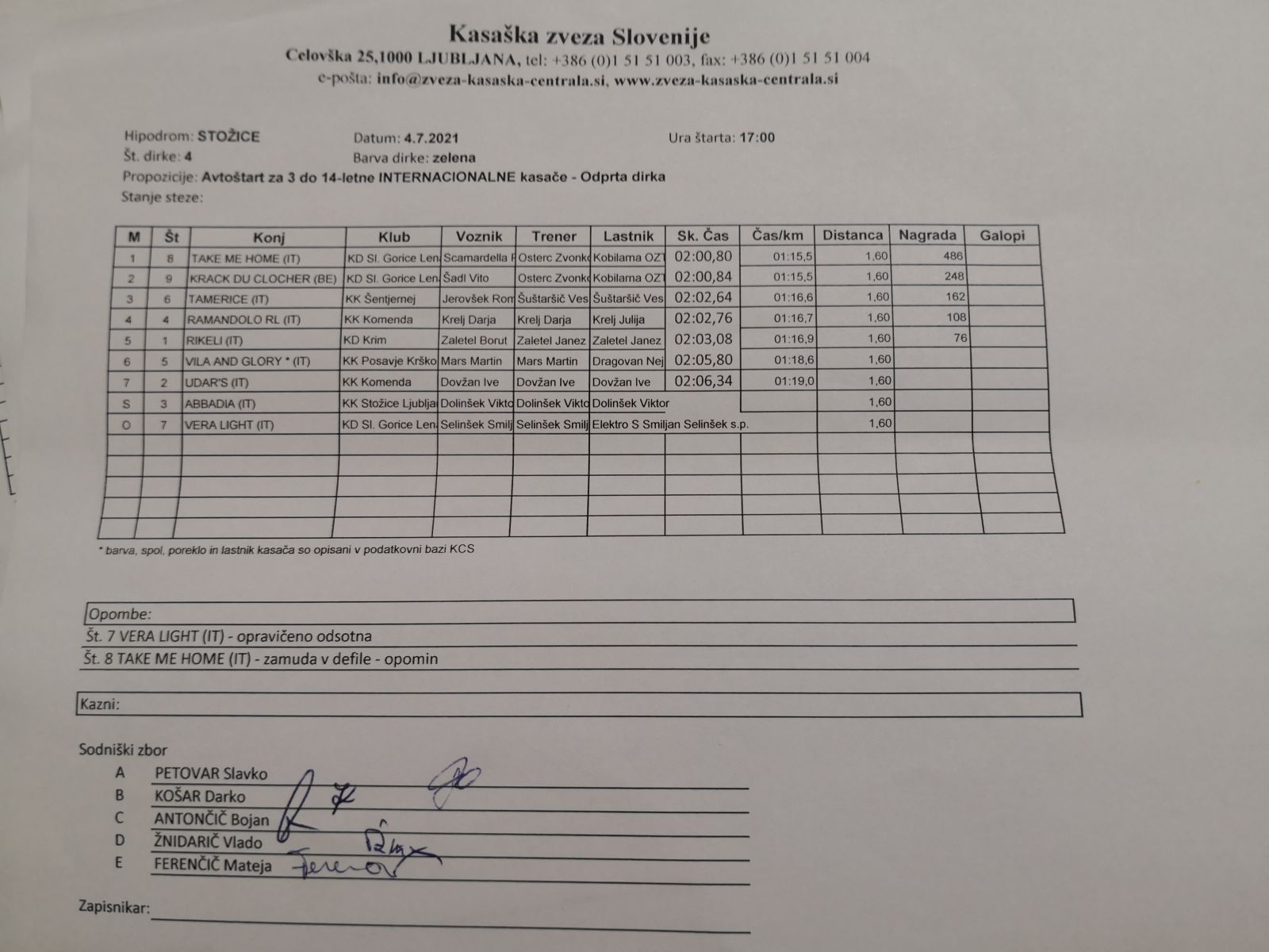 Na spodnjih povezavah najdete sodniške zapisnike dirk iz Stožic, 4. 7. 2021.