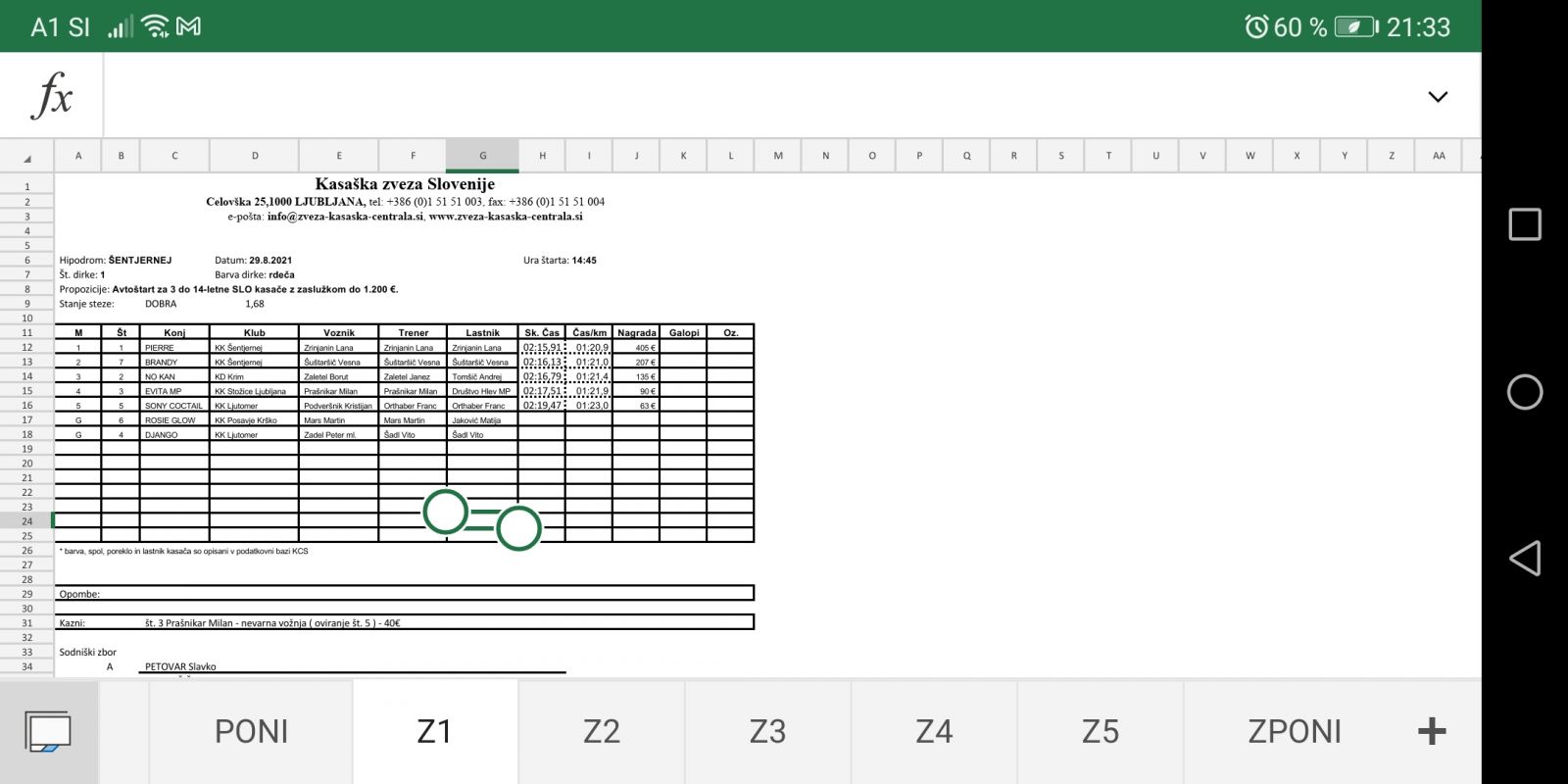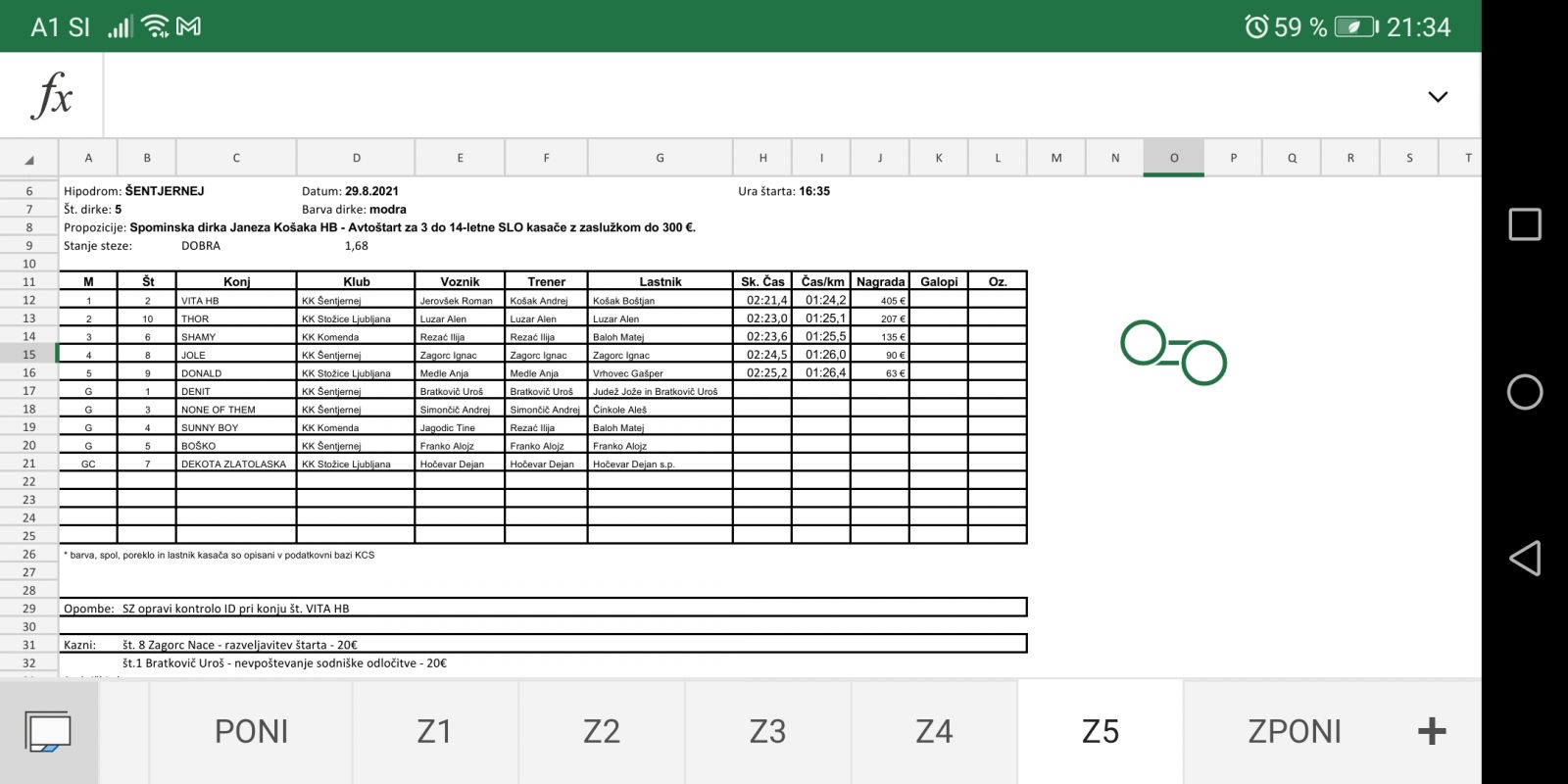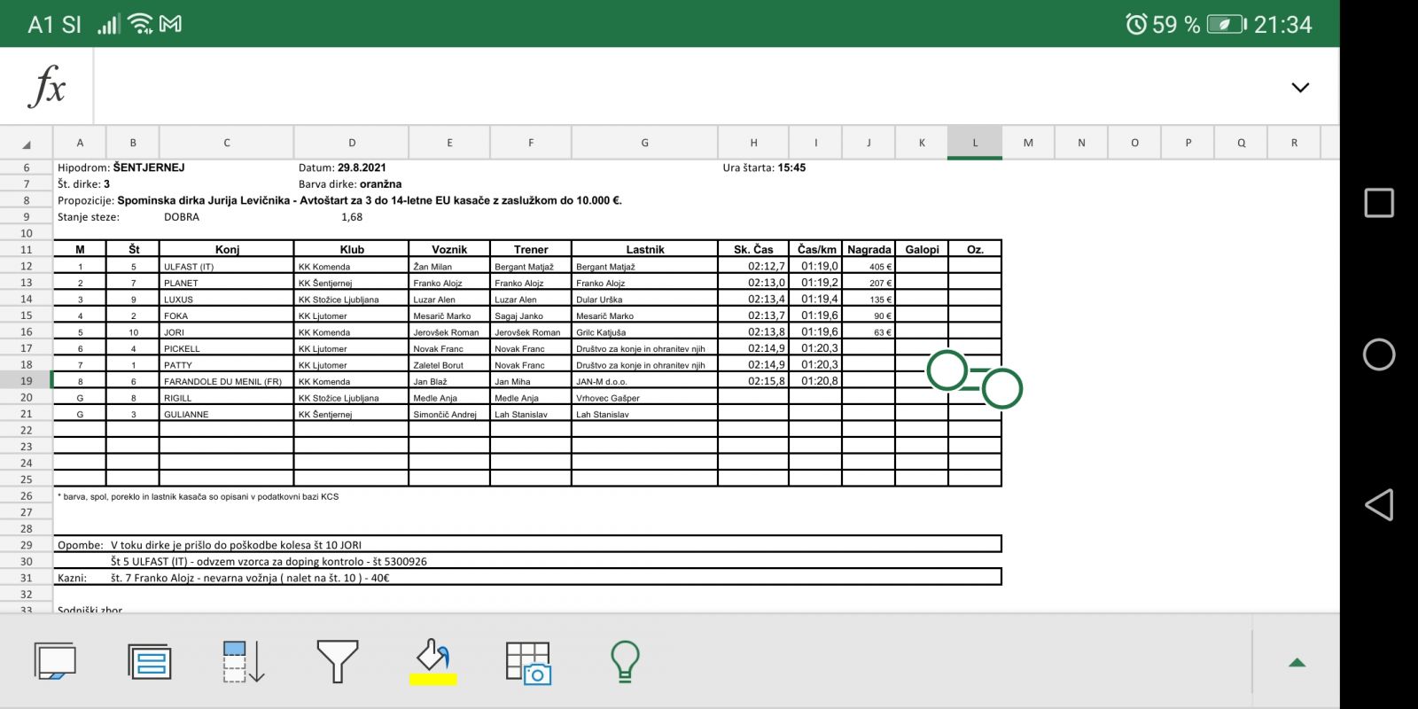 Sodniški zapisniki dirk iz Šentjerneja, 29. 8. 2021
