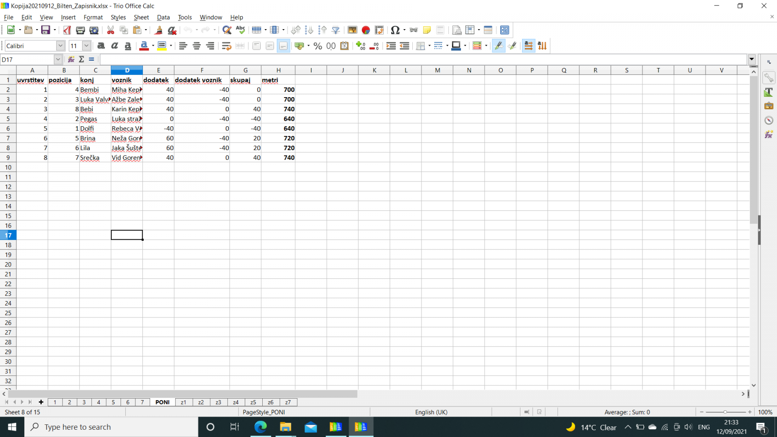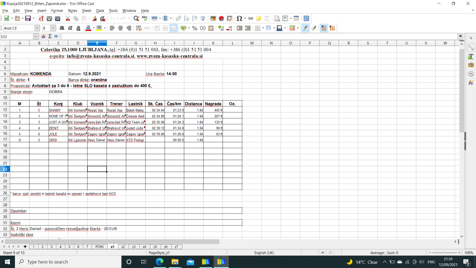 Na spodnjih povezavah najdete sodniške zapisnike iz Komende, 12. 9 .2021.