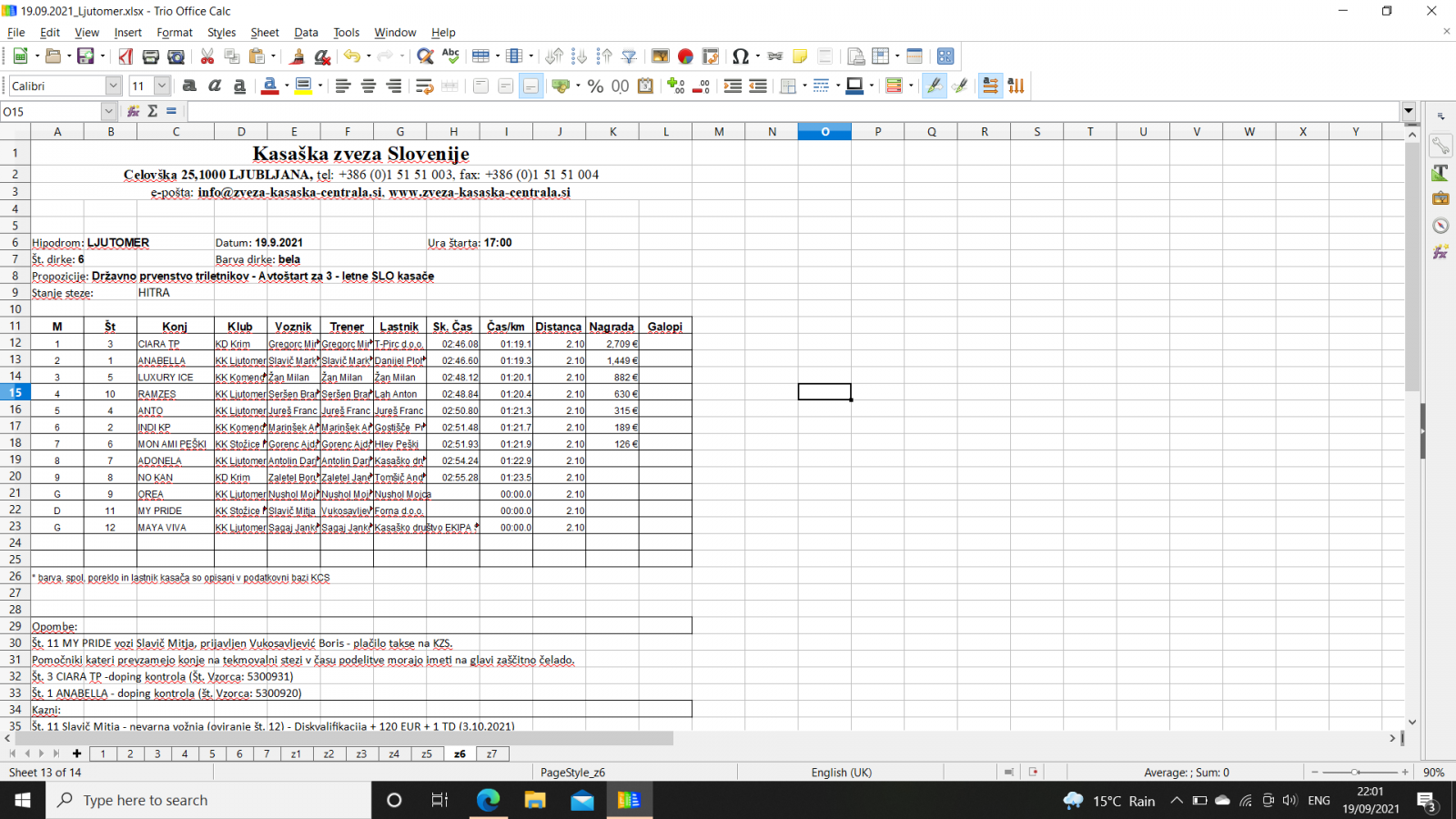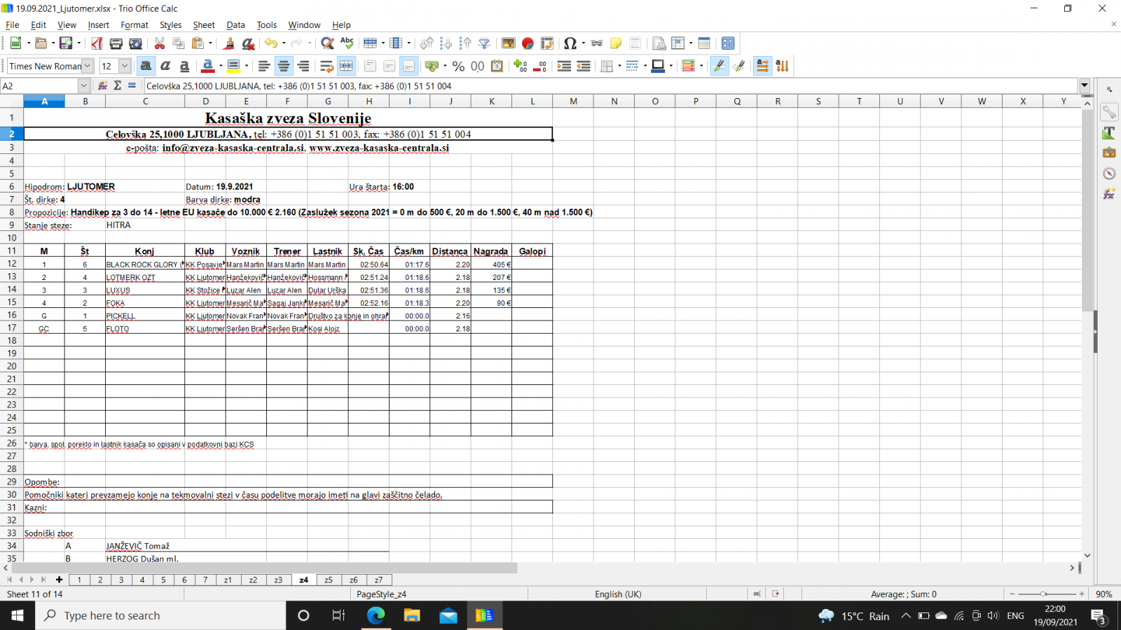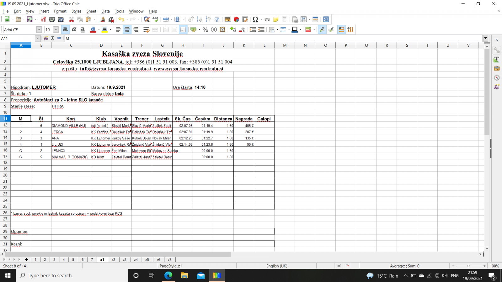 Na spodnjih povezavah, najdete sodniške rezultate iz Ljutomera, 12. 9. 2021.
