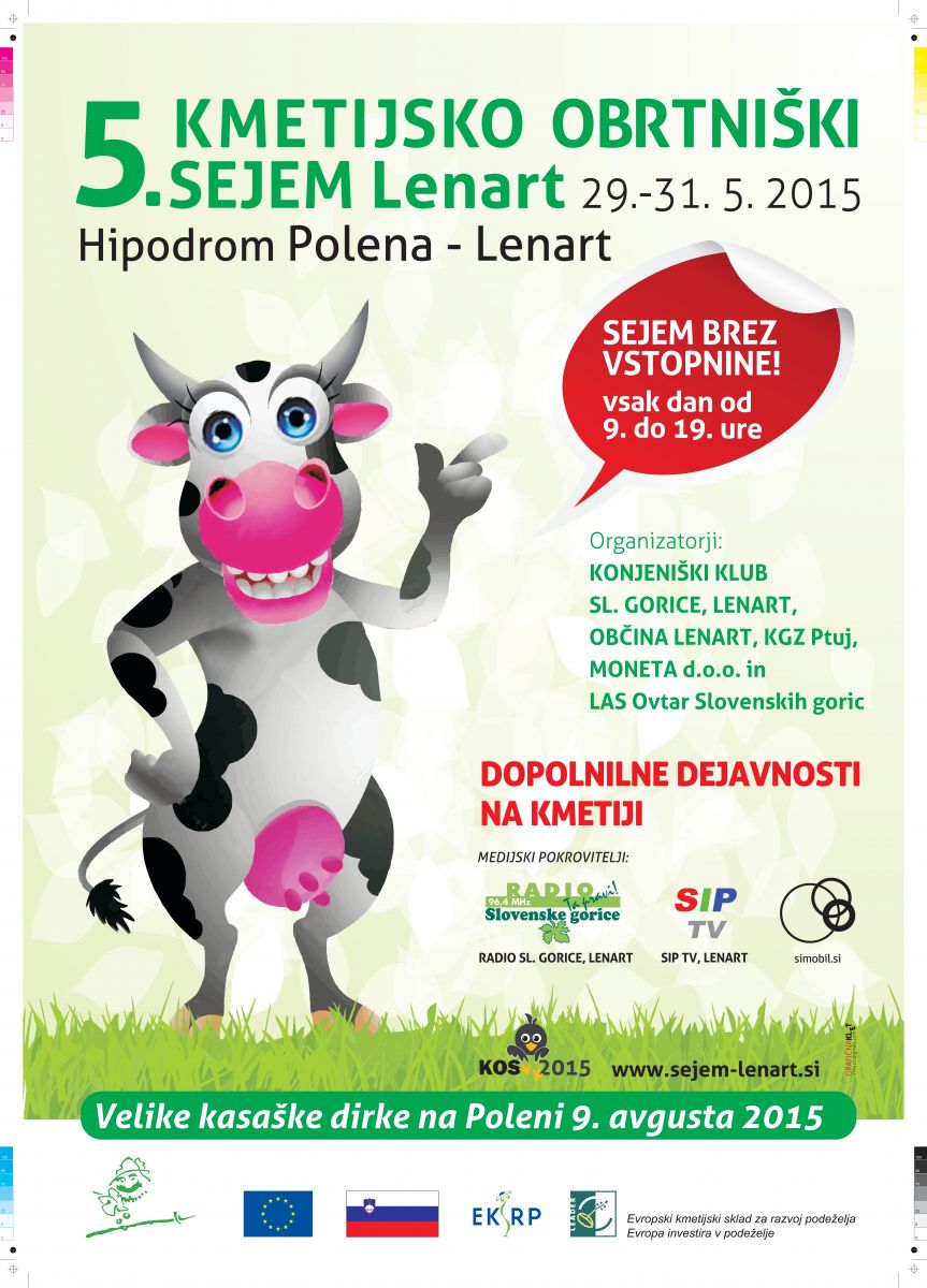 V Lenartu na hipodromu se od petka 29.5 do 31.5.2015 odvija že 5.Kmetijsko-obrtniški sejem KOS 2015. Vse podrobnosti lahko preberete na spletni strani www.sejem-lenart.si.