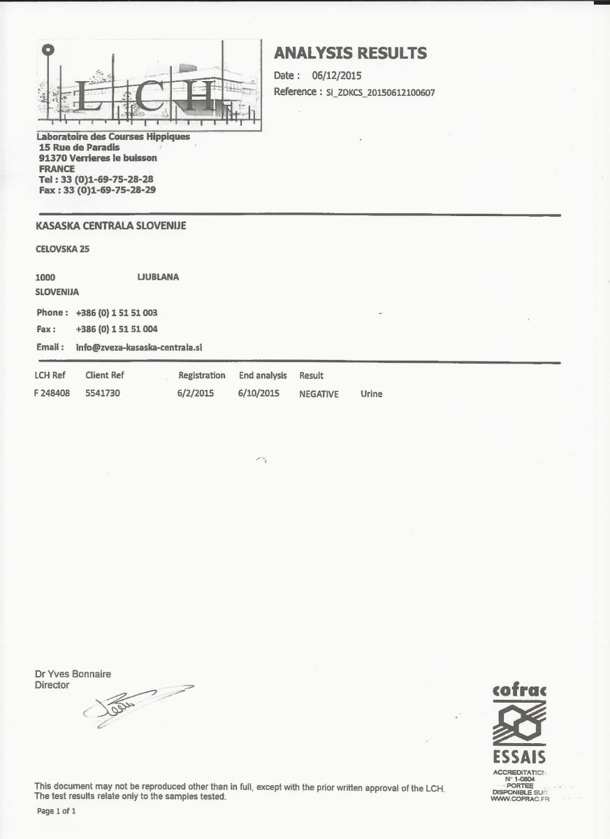 V prilogi lahko najdete rezultate doping testov iz dirk 31. 5. 2015 v Stožicah in 24. 5. 2015 v Ljutomeru.