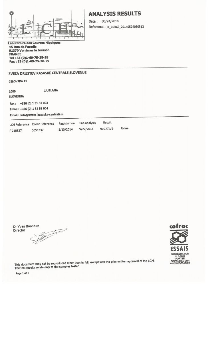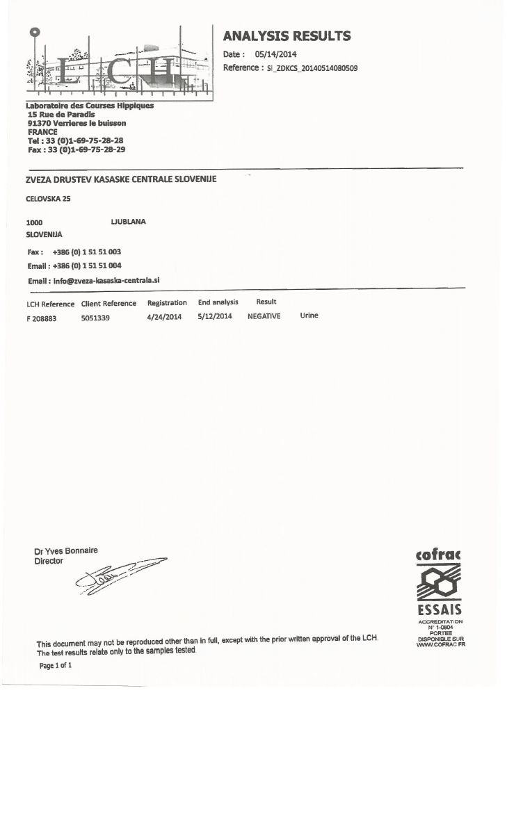Na Centralo smo prejeli rezultate doping testov za maj, junij in julij. Zaradi nesporazuma z laboratorijem glede plačevanja testov, smo na teste čakali nekoliko dlje. Vsi odvzeti vzorci so bili negativni, rezultate pa najdete spodaj.
