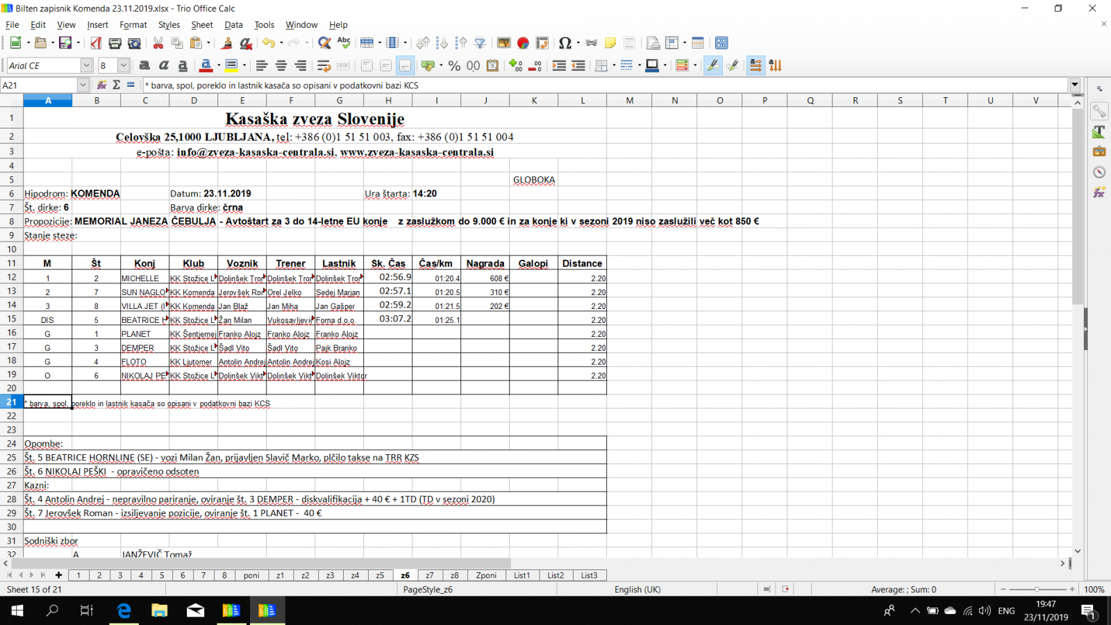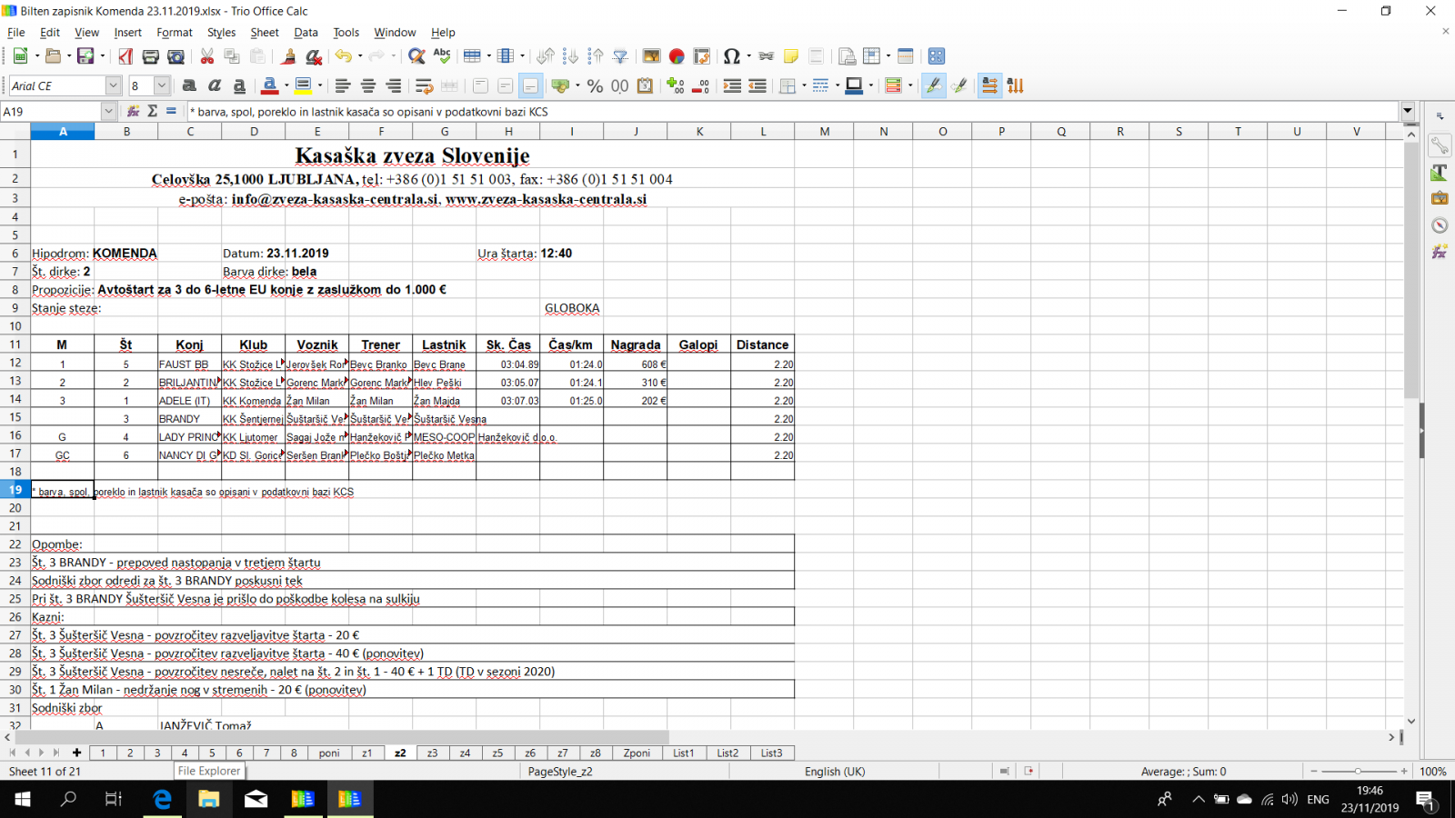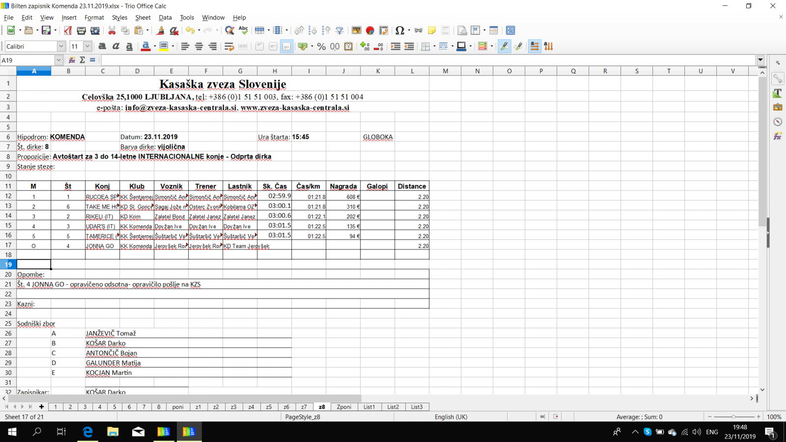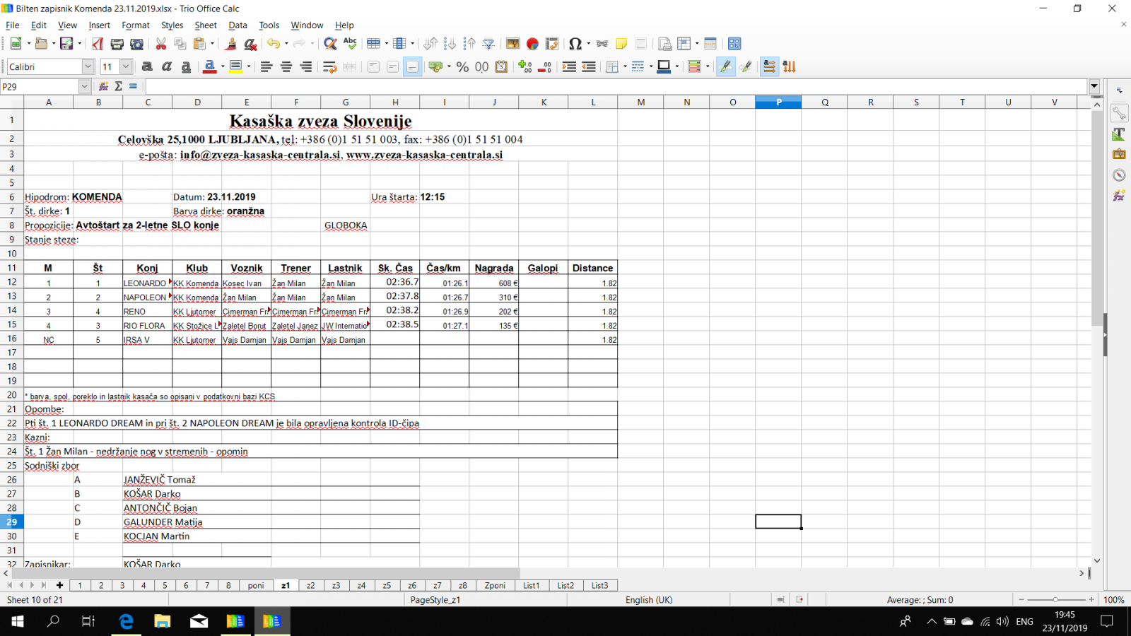 Rezultati Komenda, 23. 11. 2019
