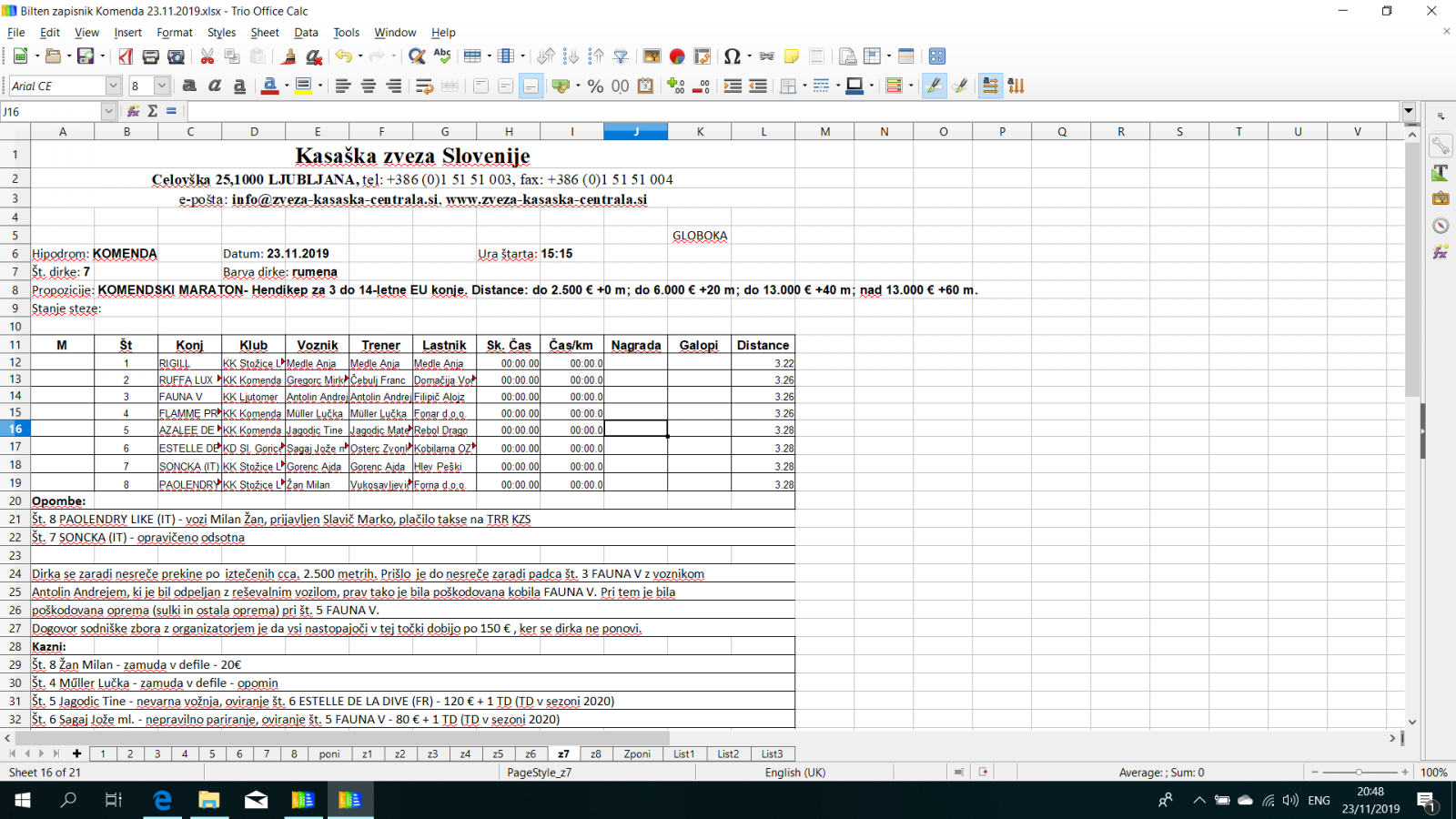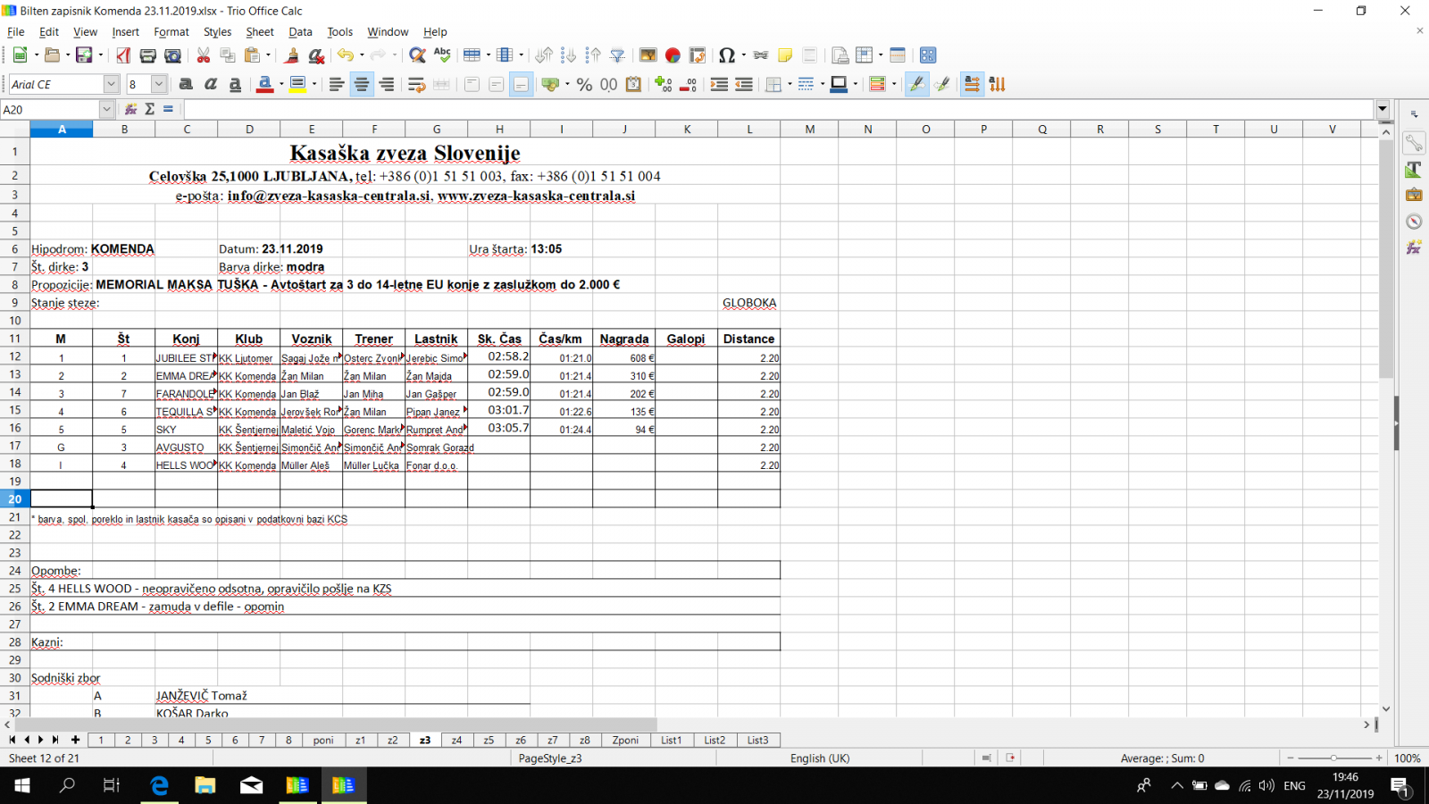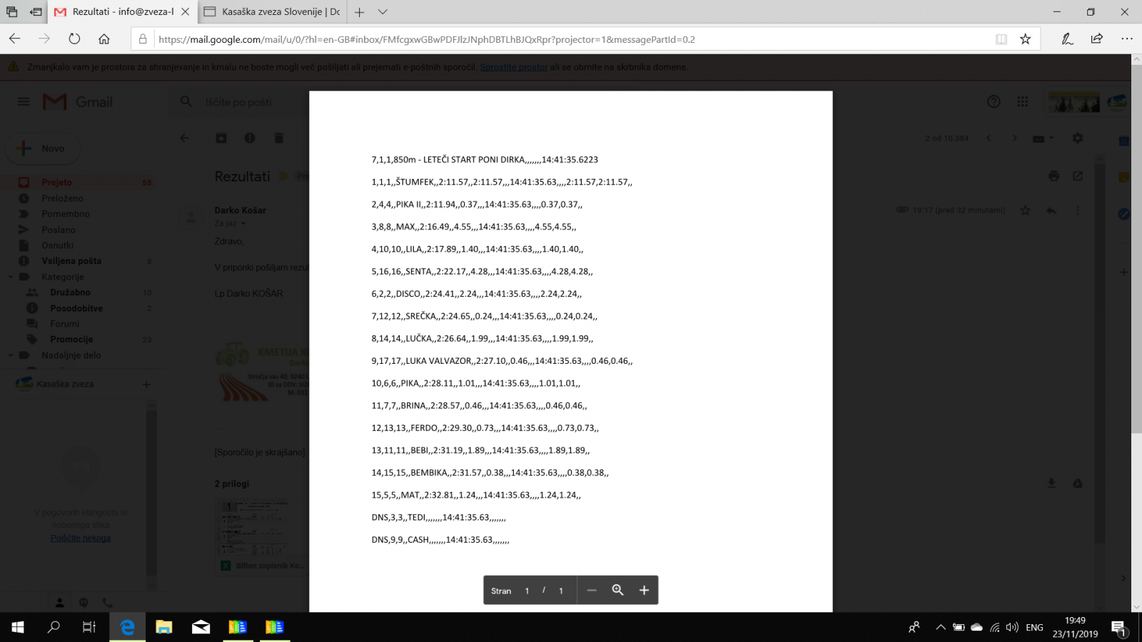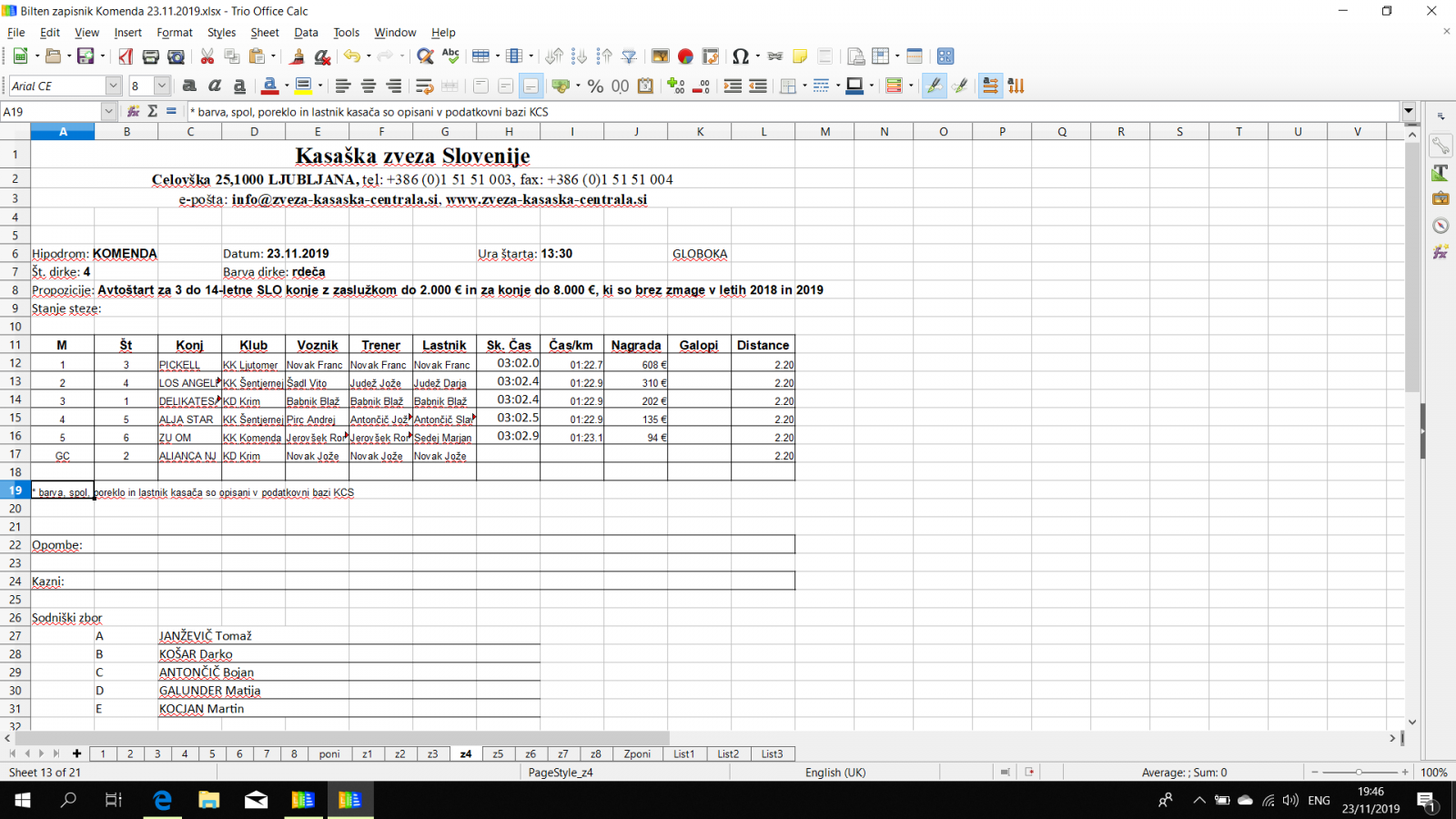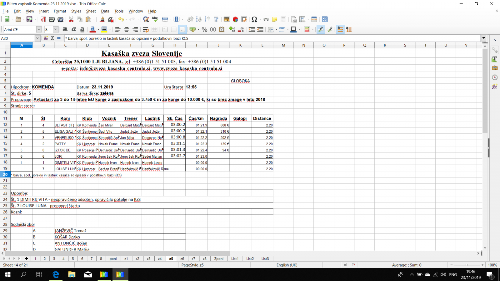 Rezultati Komenda, 23. 11. 2019