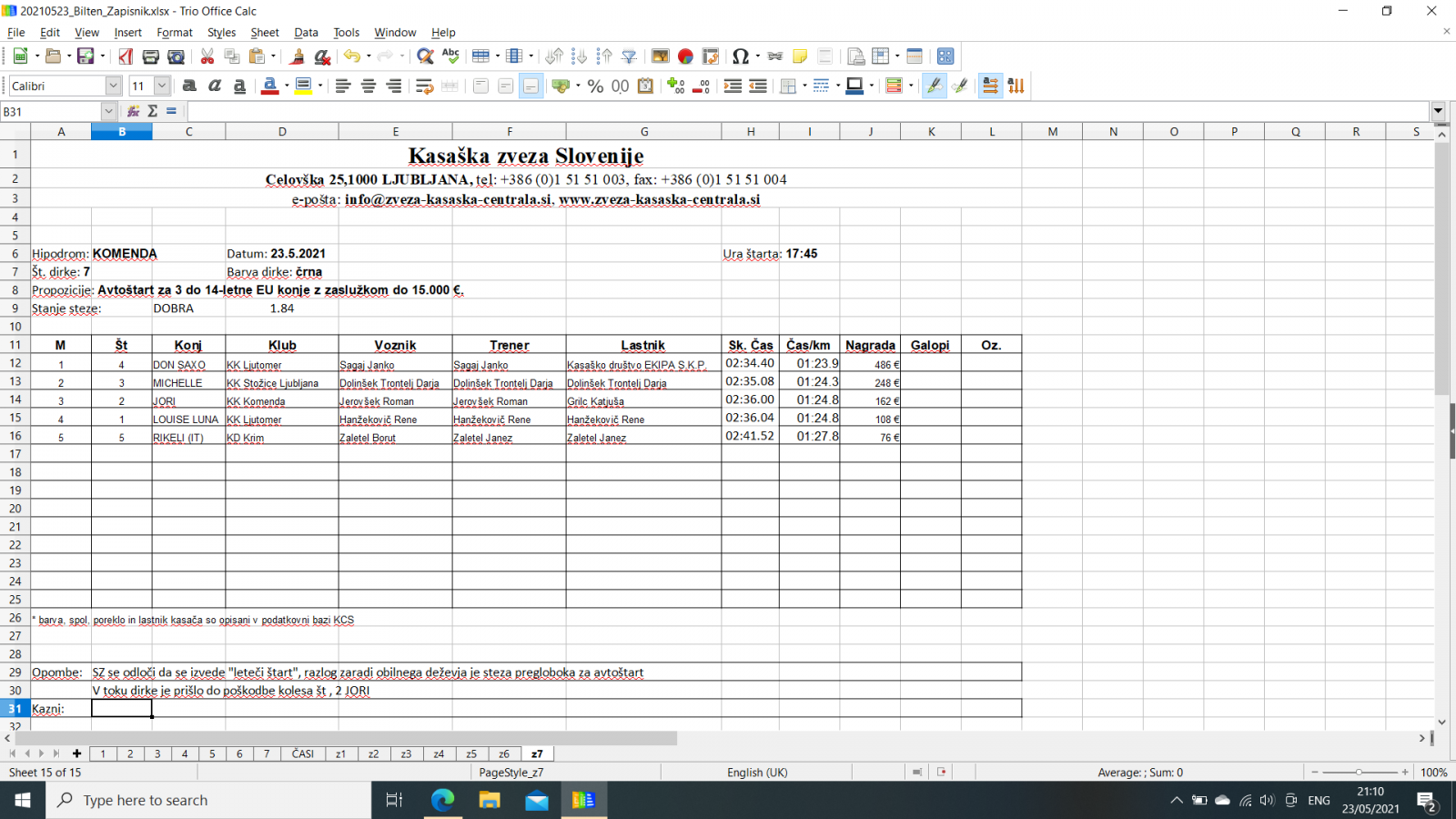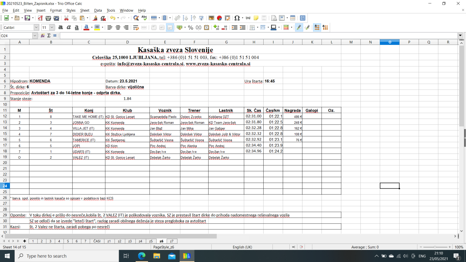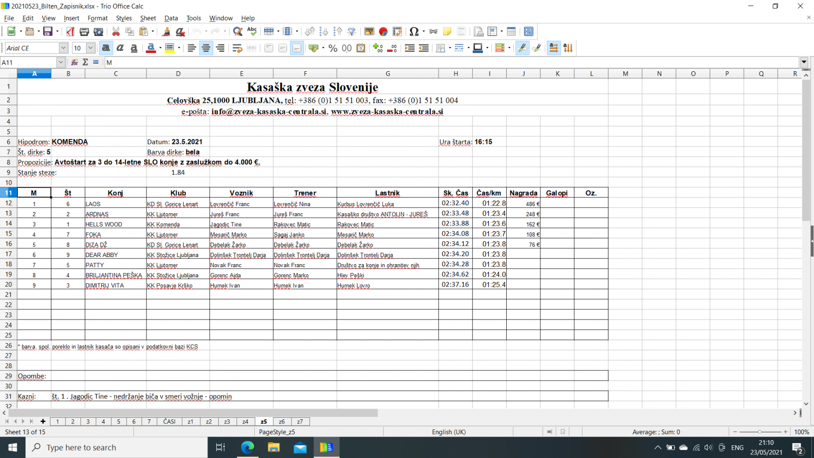 Na spodnjih povezavah najdete razultate za dirke v Komendi, 23. 5. 2021.