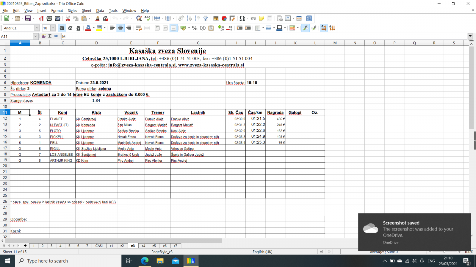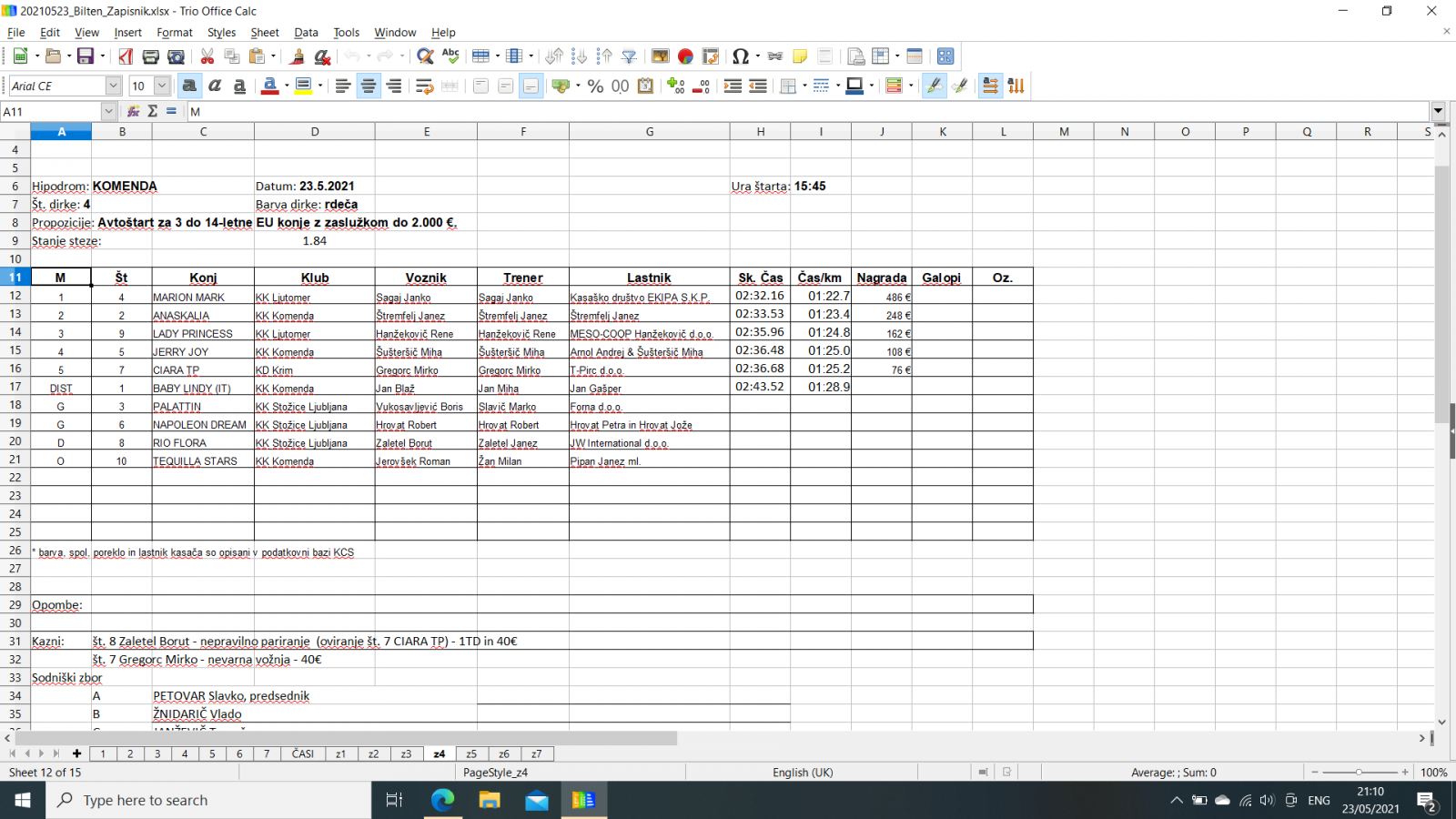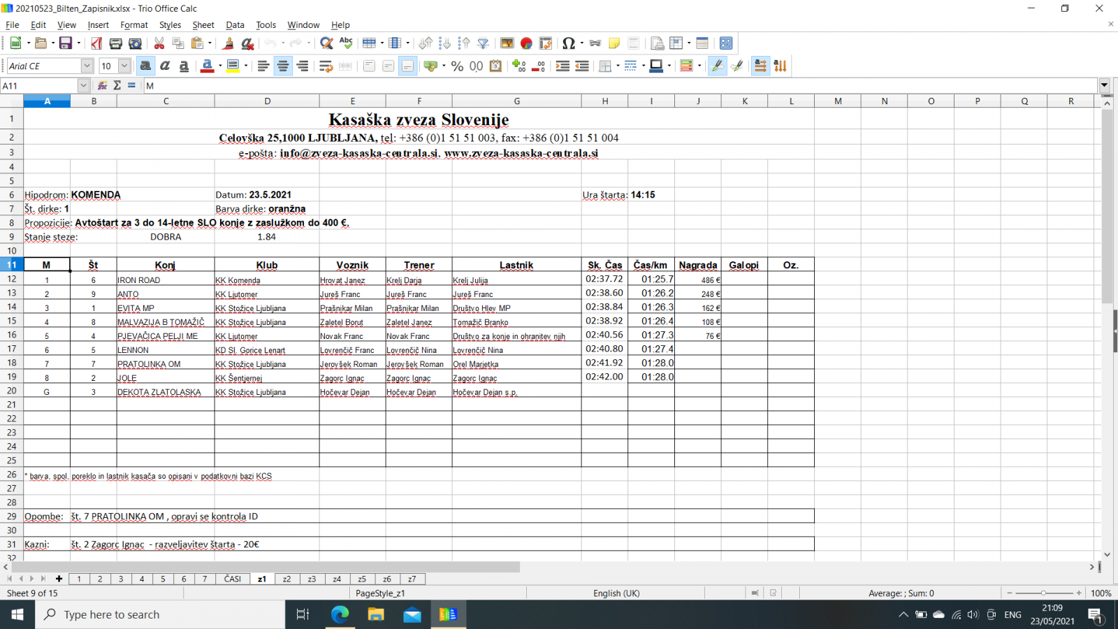 Na spodnjih povezavah najdete razultate za dirke v Komendi, 23. 5. 2021.