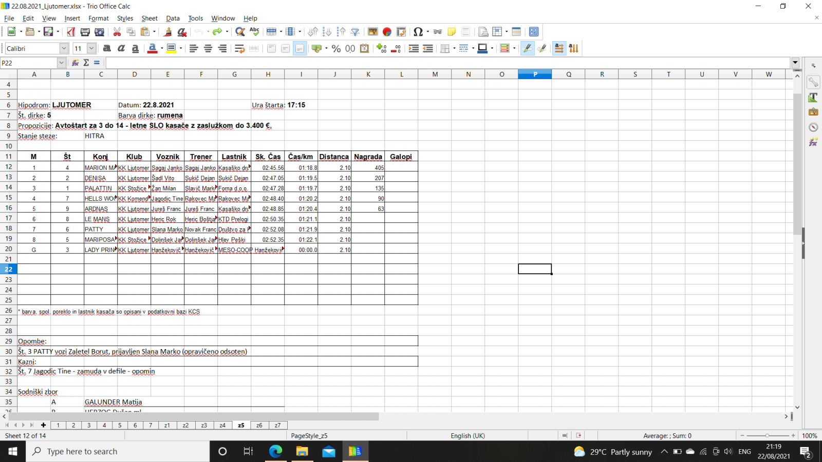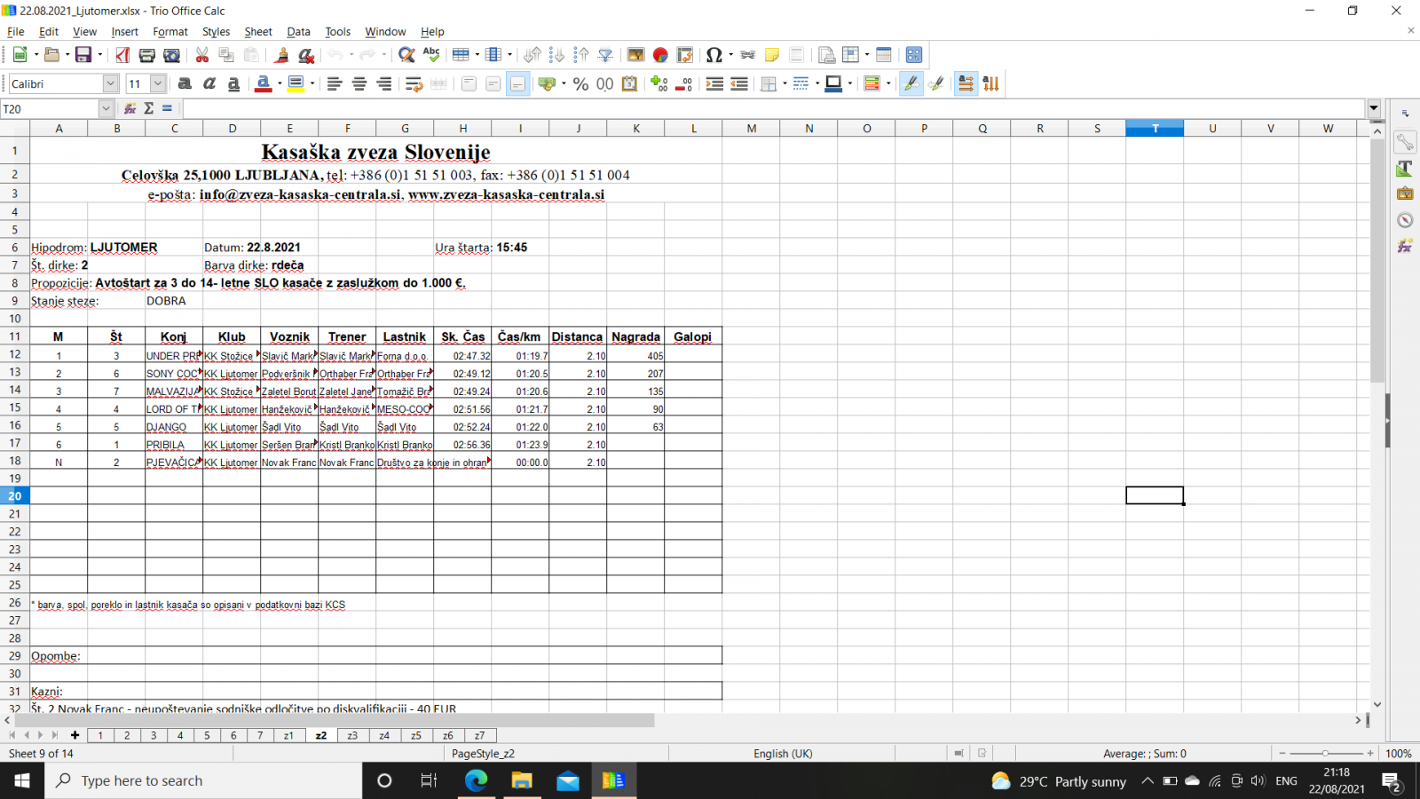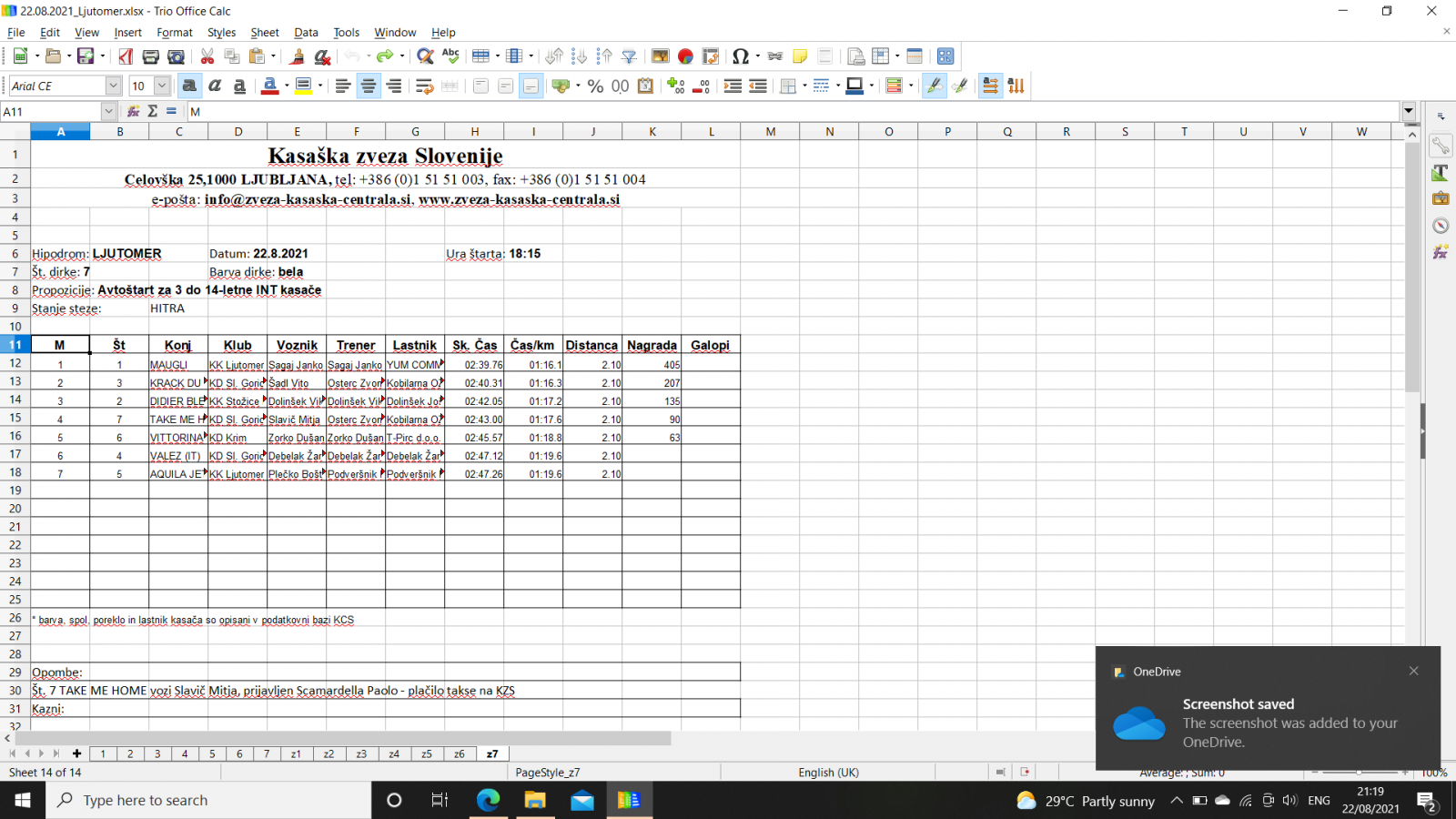 Na spodnjih povezavah najdete zapisnike dirk iz Ljutomera, 22. 8. 2021.