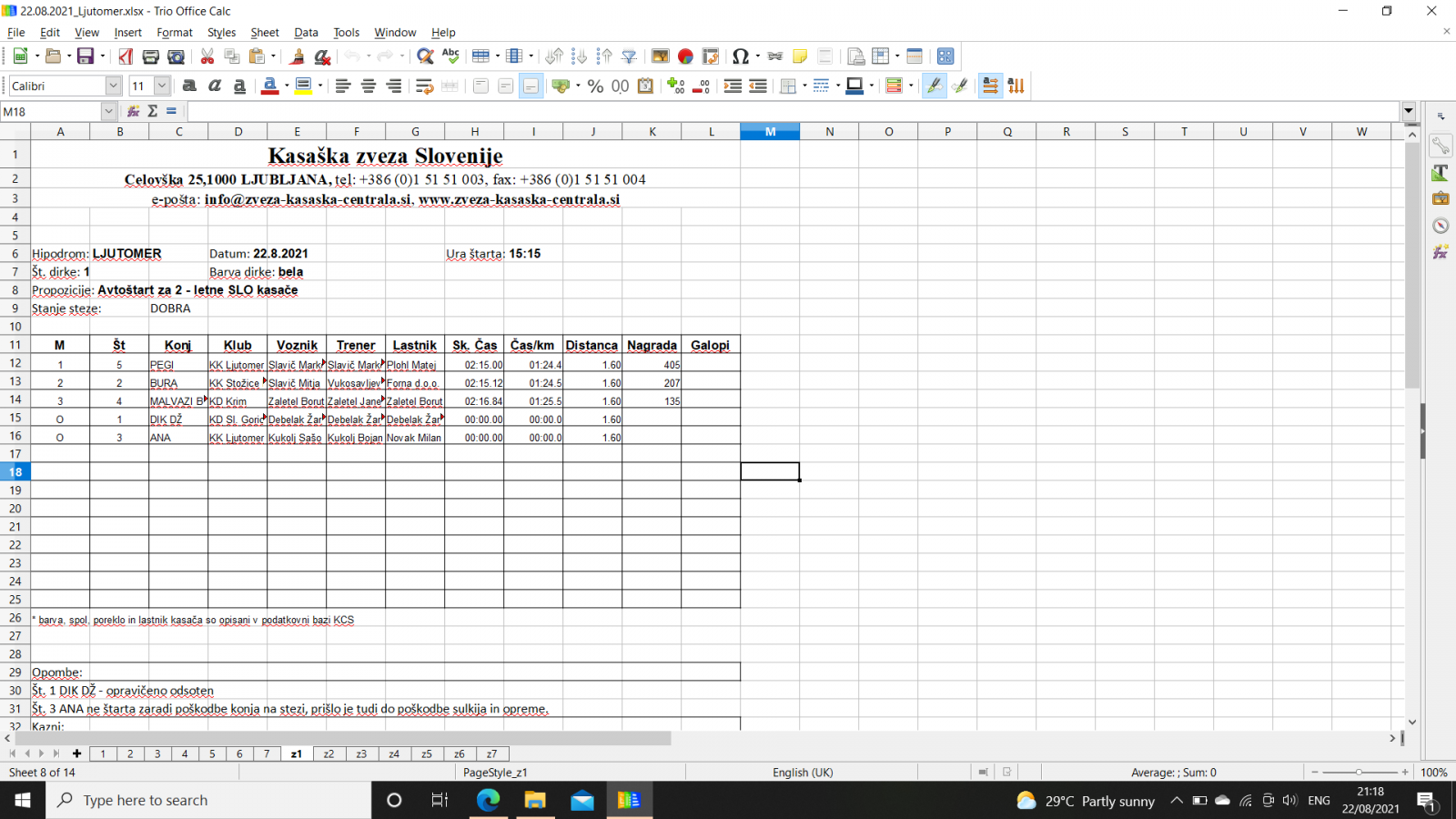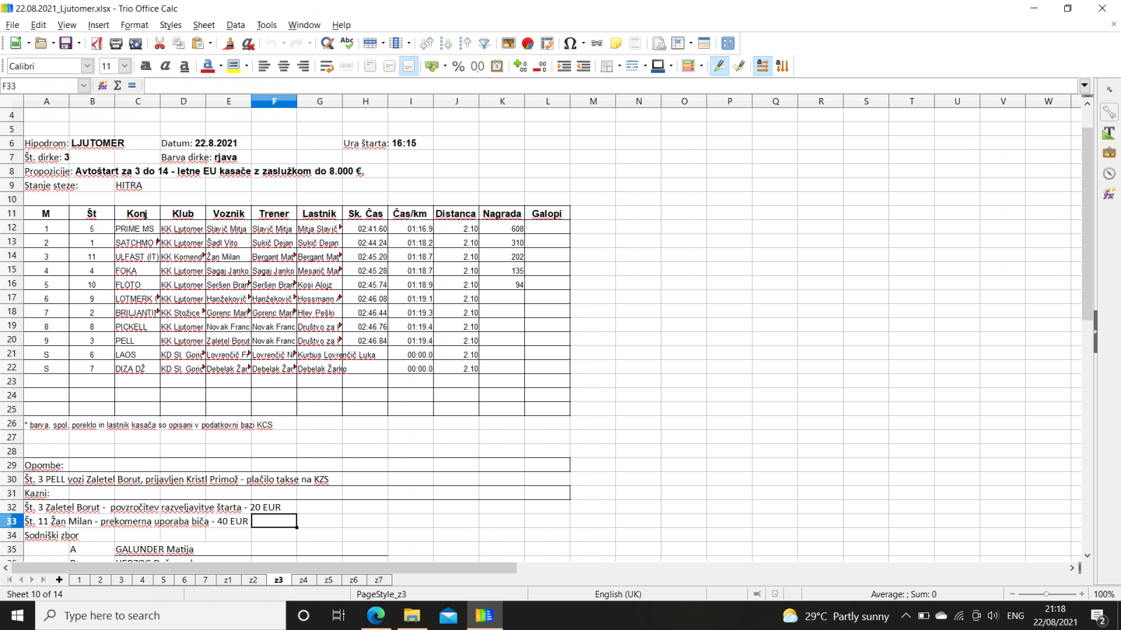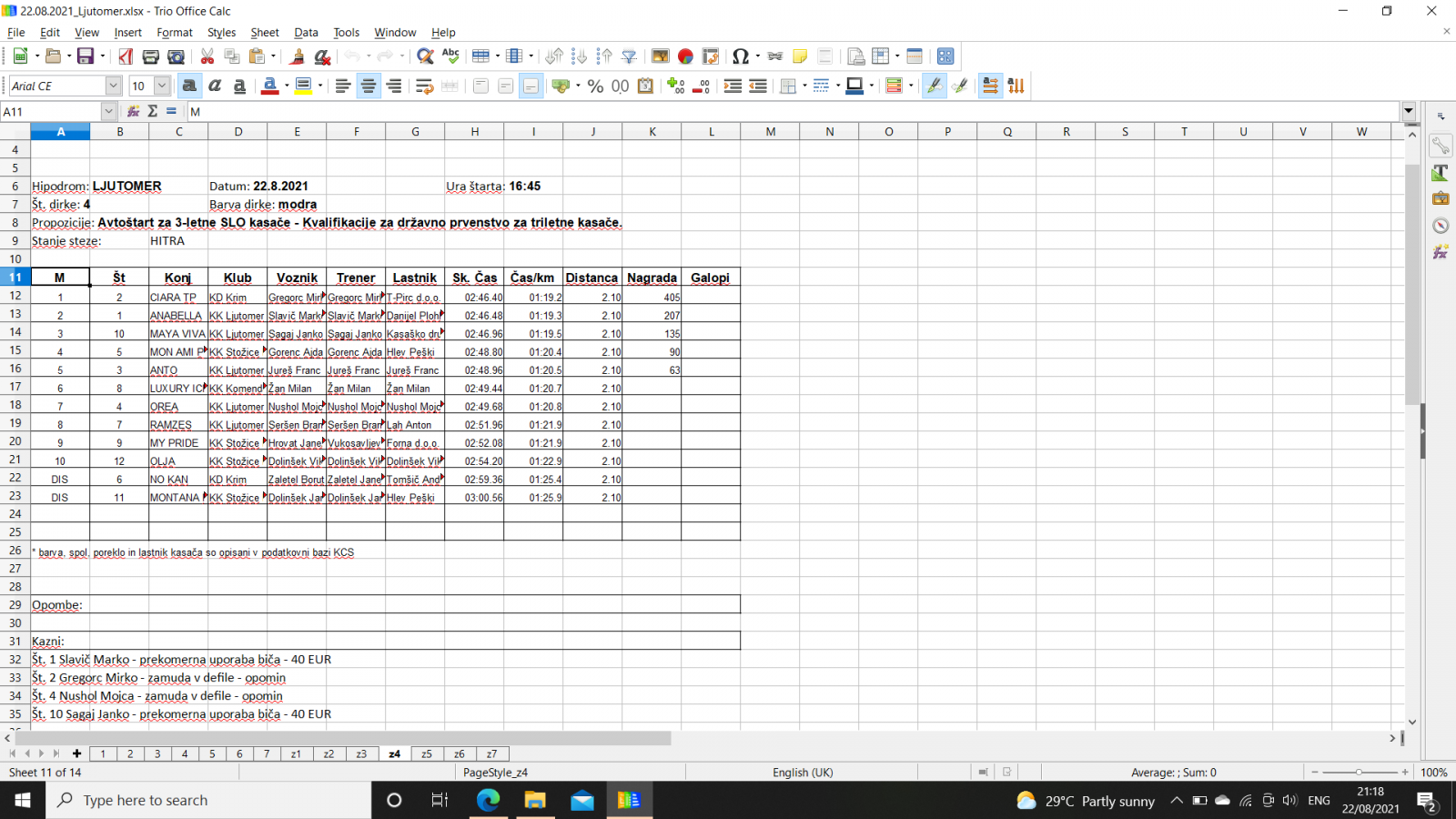 Na spodnjih povezavah najdete zapisnike dirk iz Ljutomera, 22. 8. 2021.