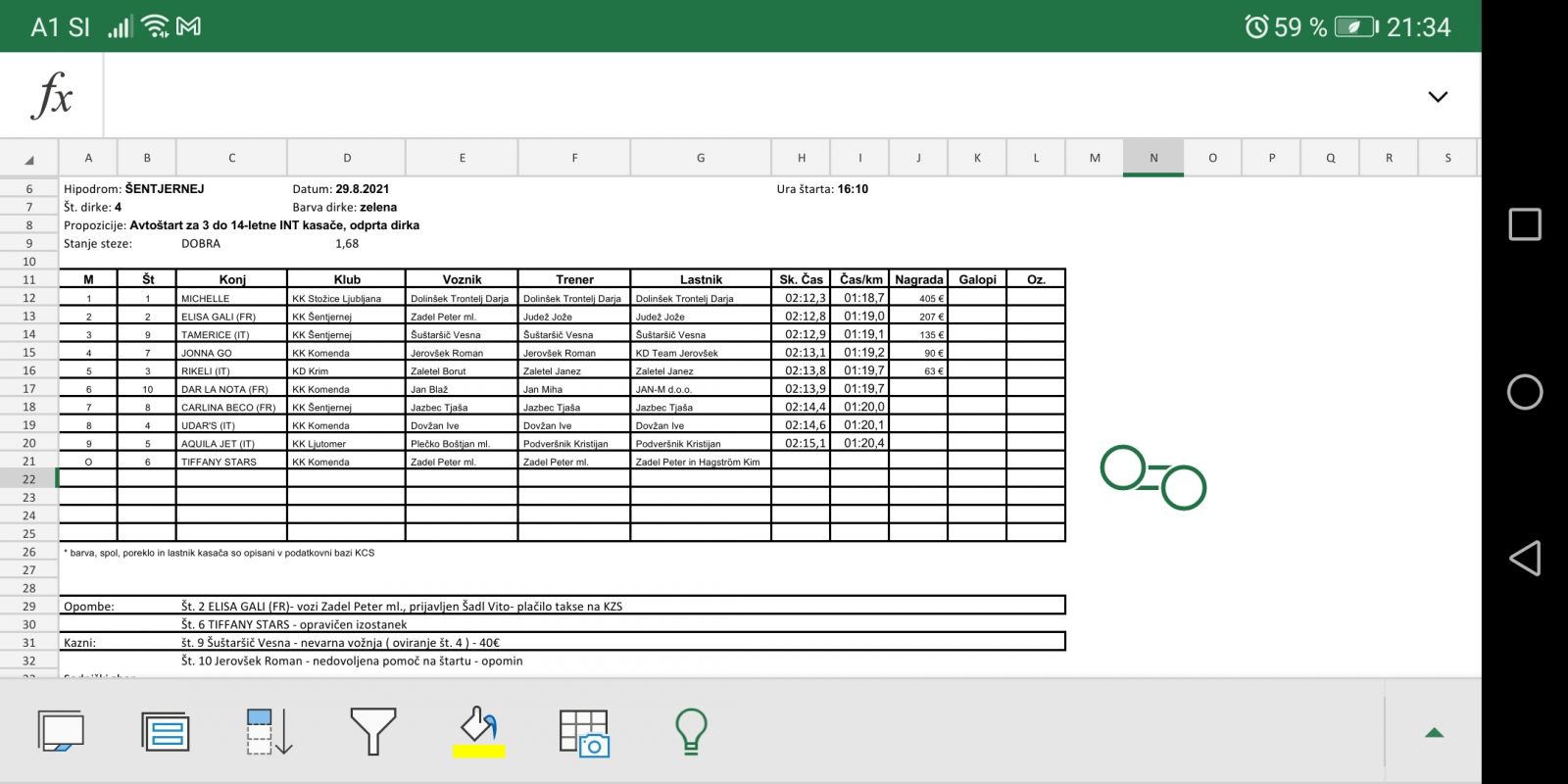 Sodniški zapisniki dirk iz Šentjerneja, 29. 8. 2021