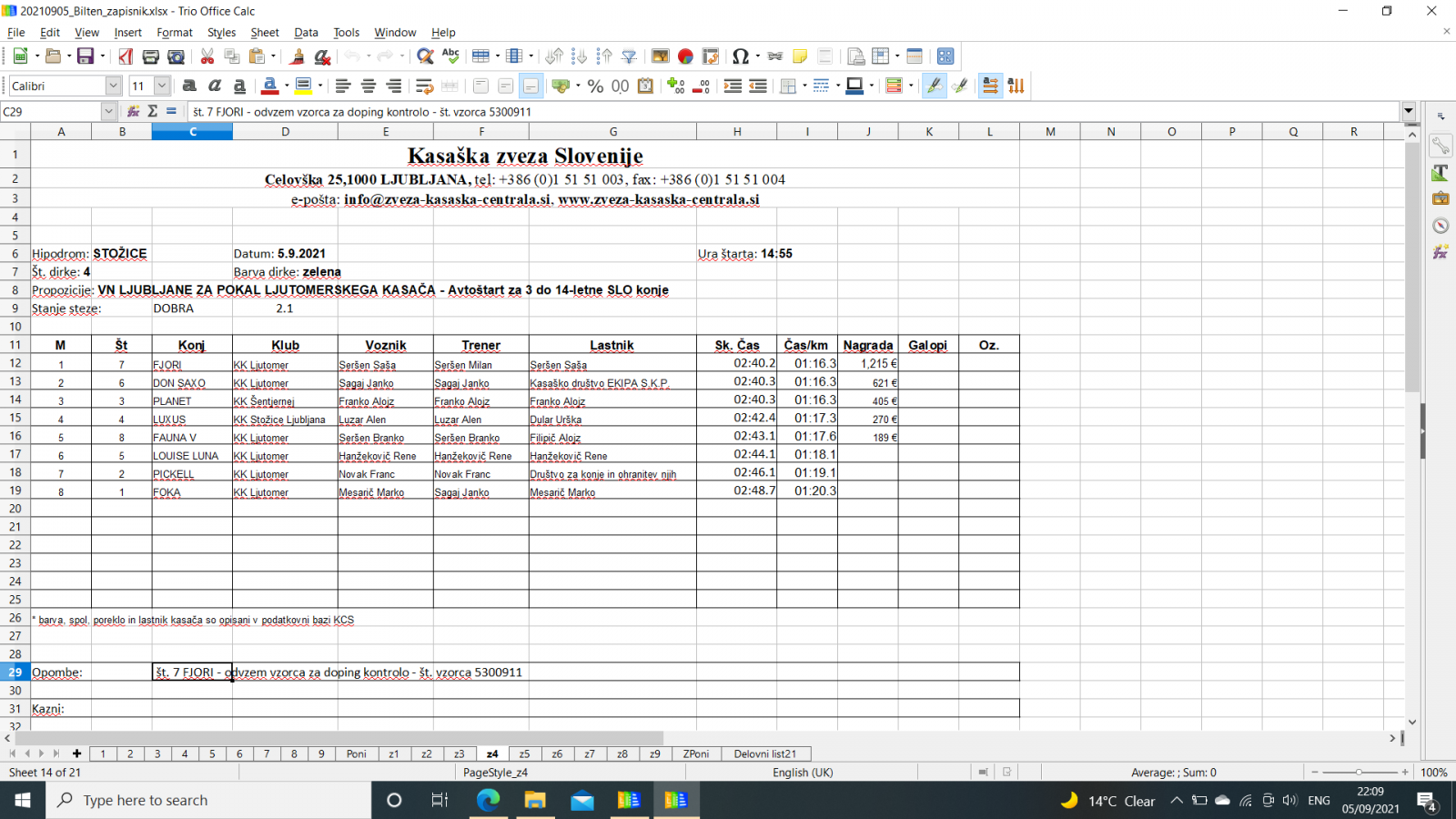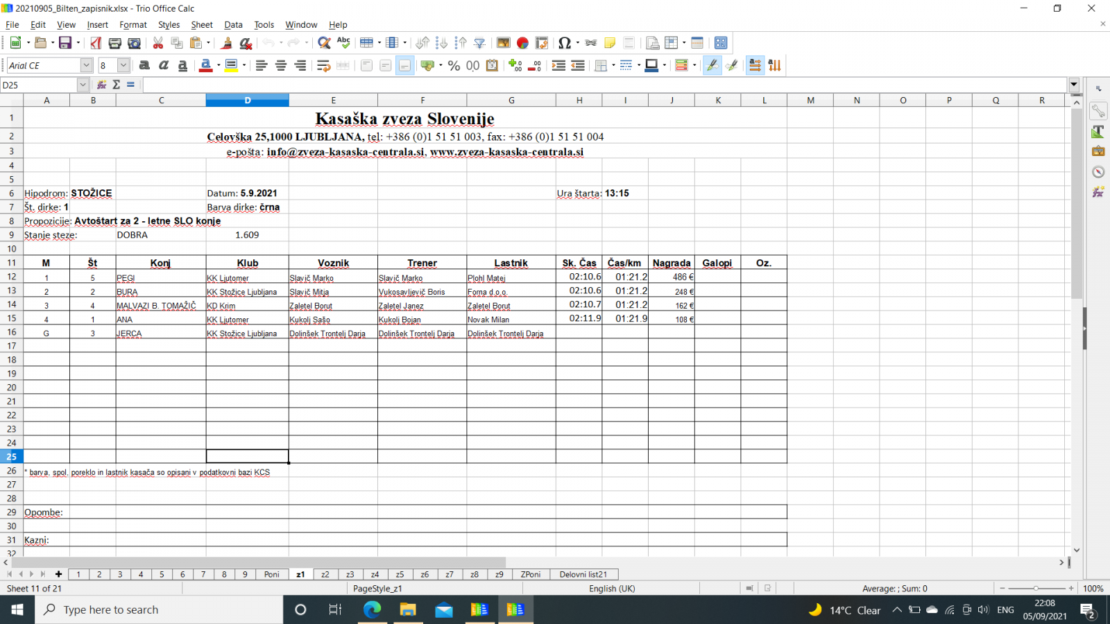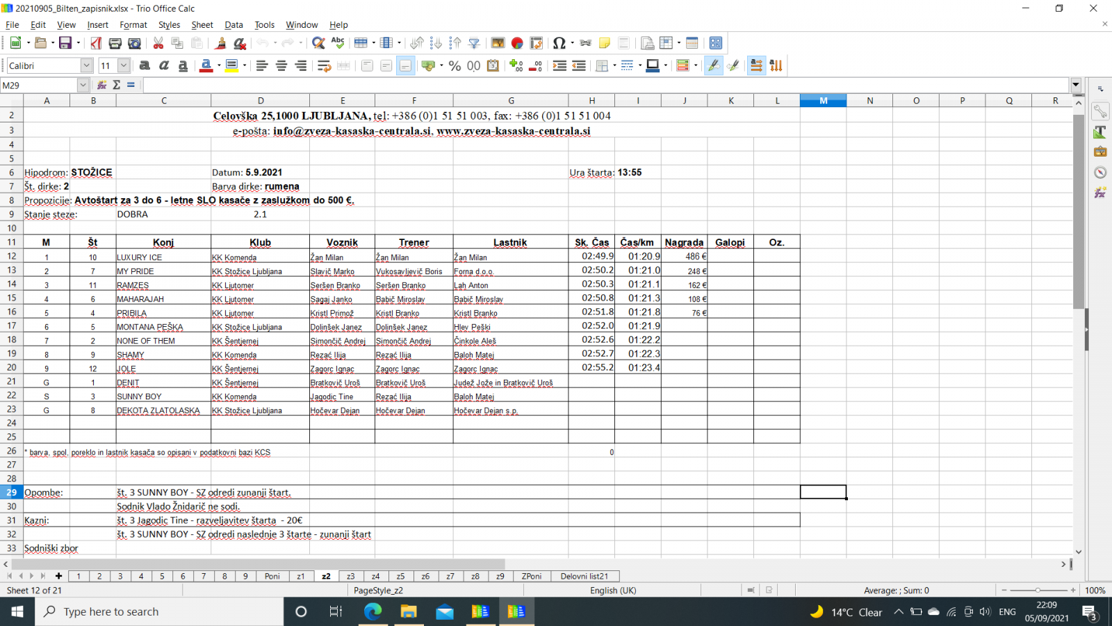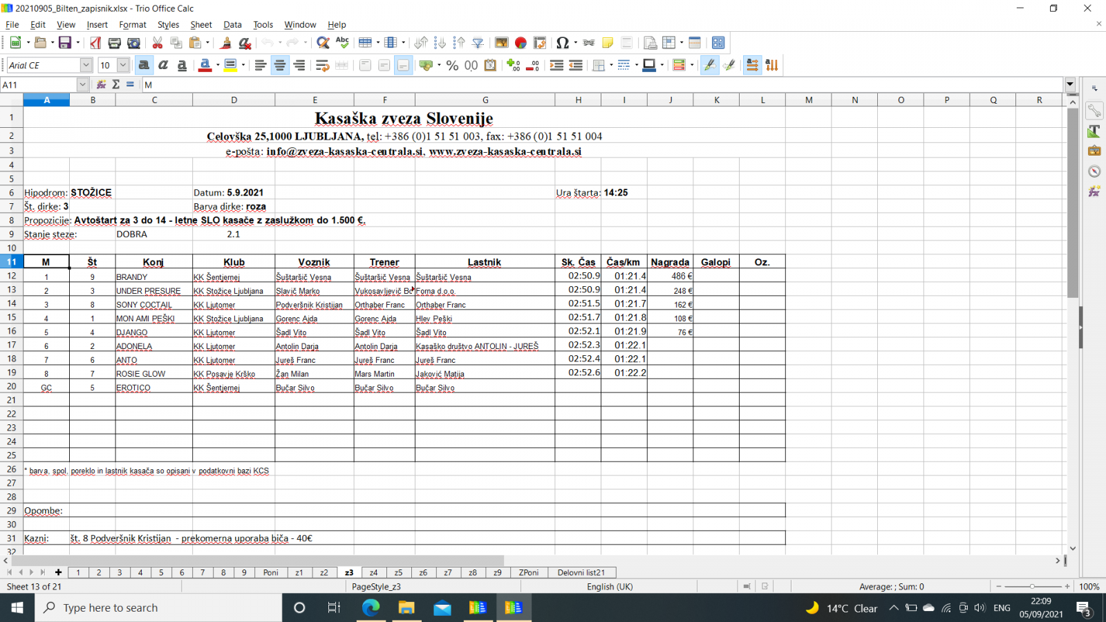 Na spodnjih povezavah najdete sodniške zapisnike iz Stožic, 5. 9. 2021.