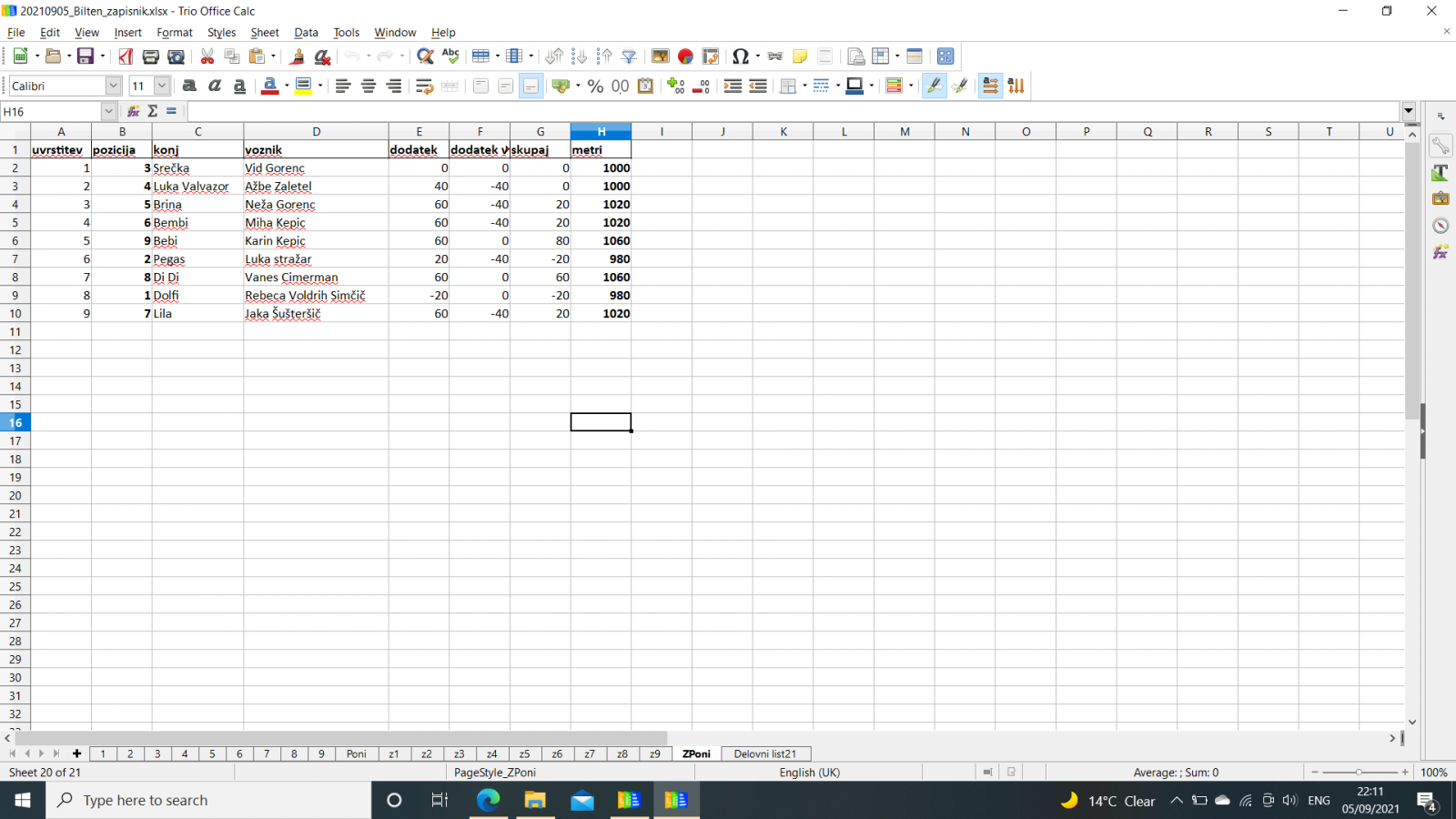 Rezultati iz Stožic 5.9.2021