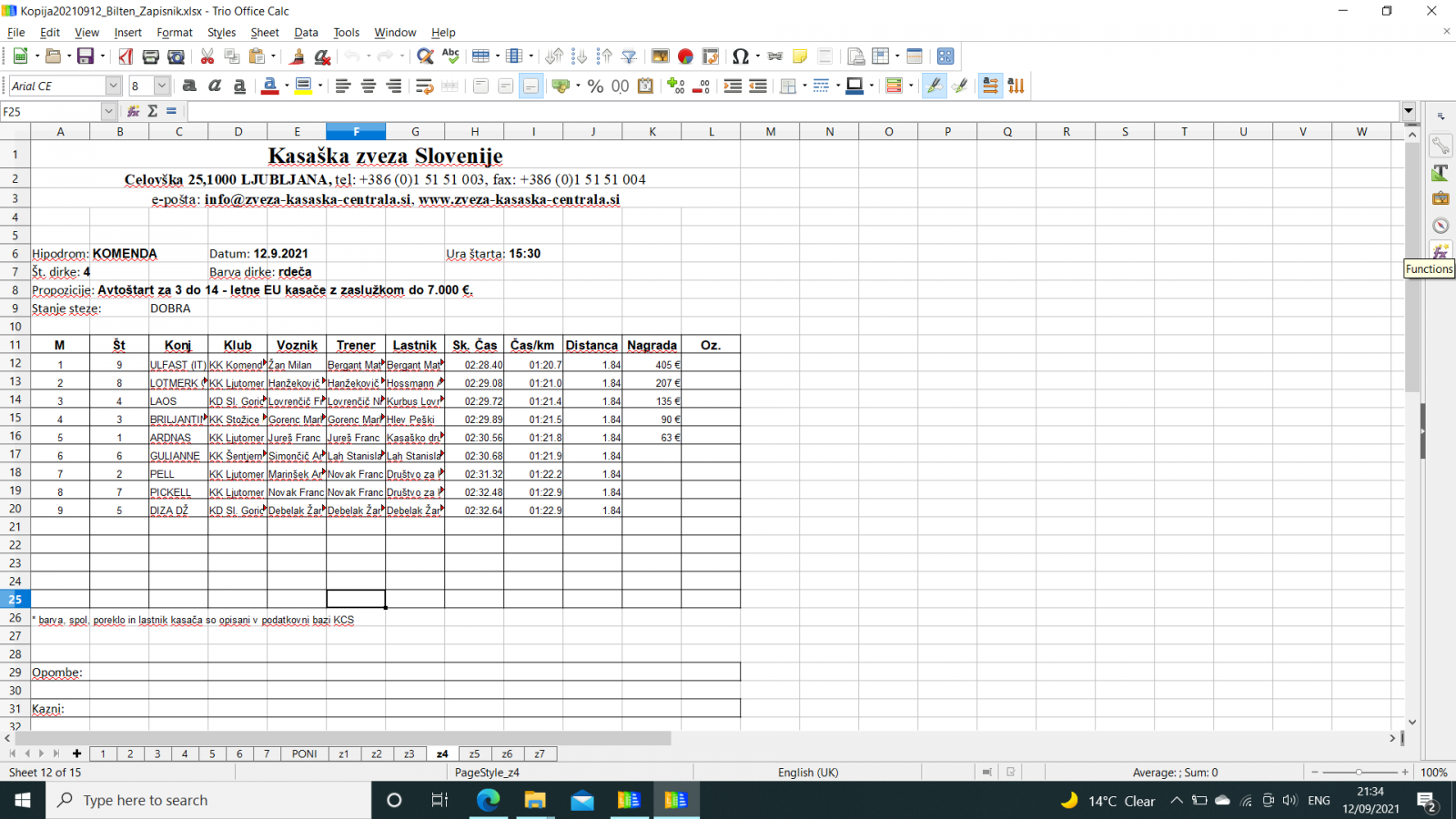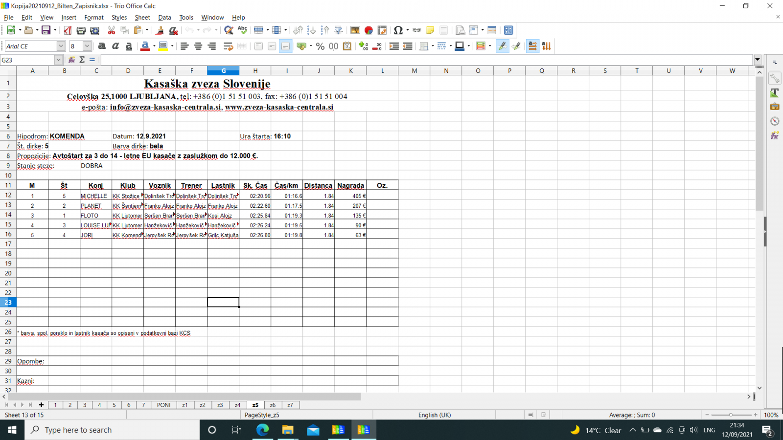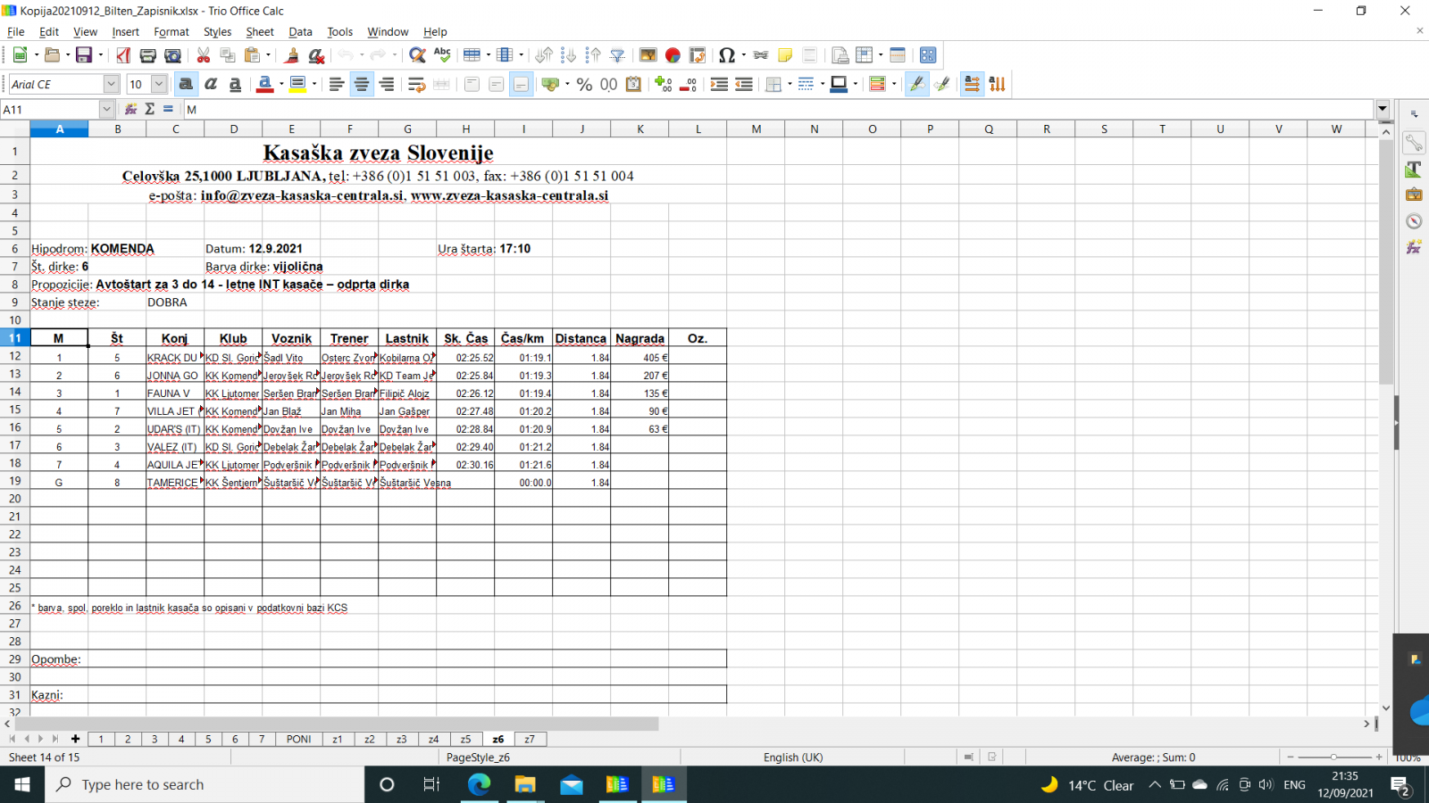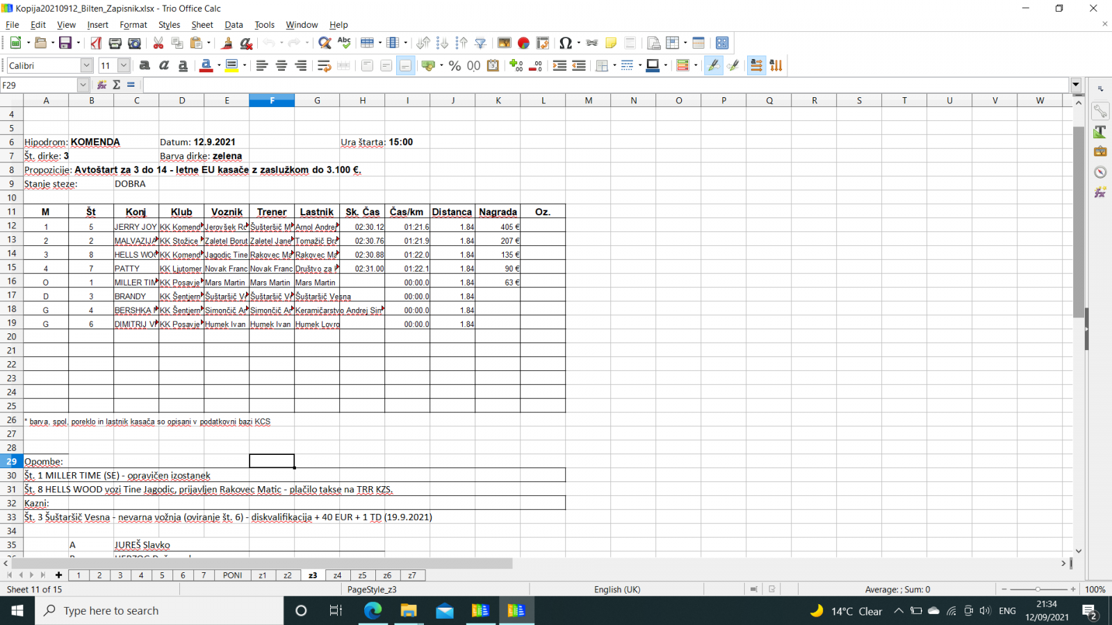 Na spodnjih povezavah najdete sodniške zapisnike iz Komende, 12. 9 .2021.