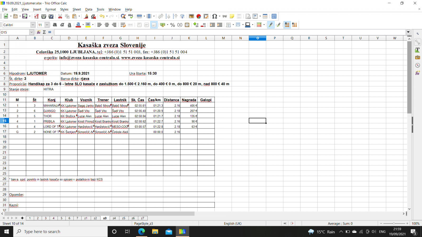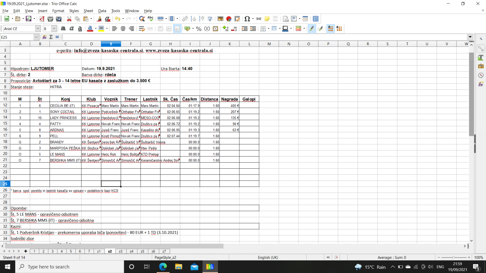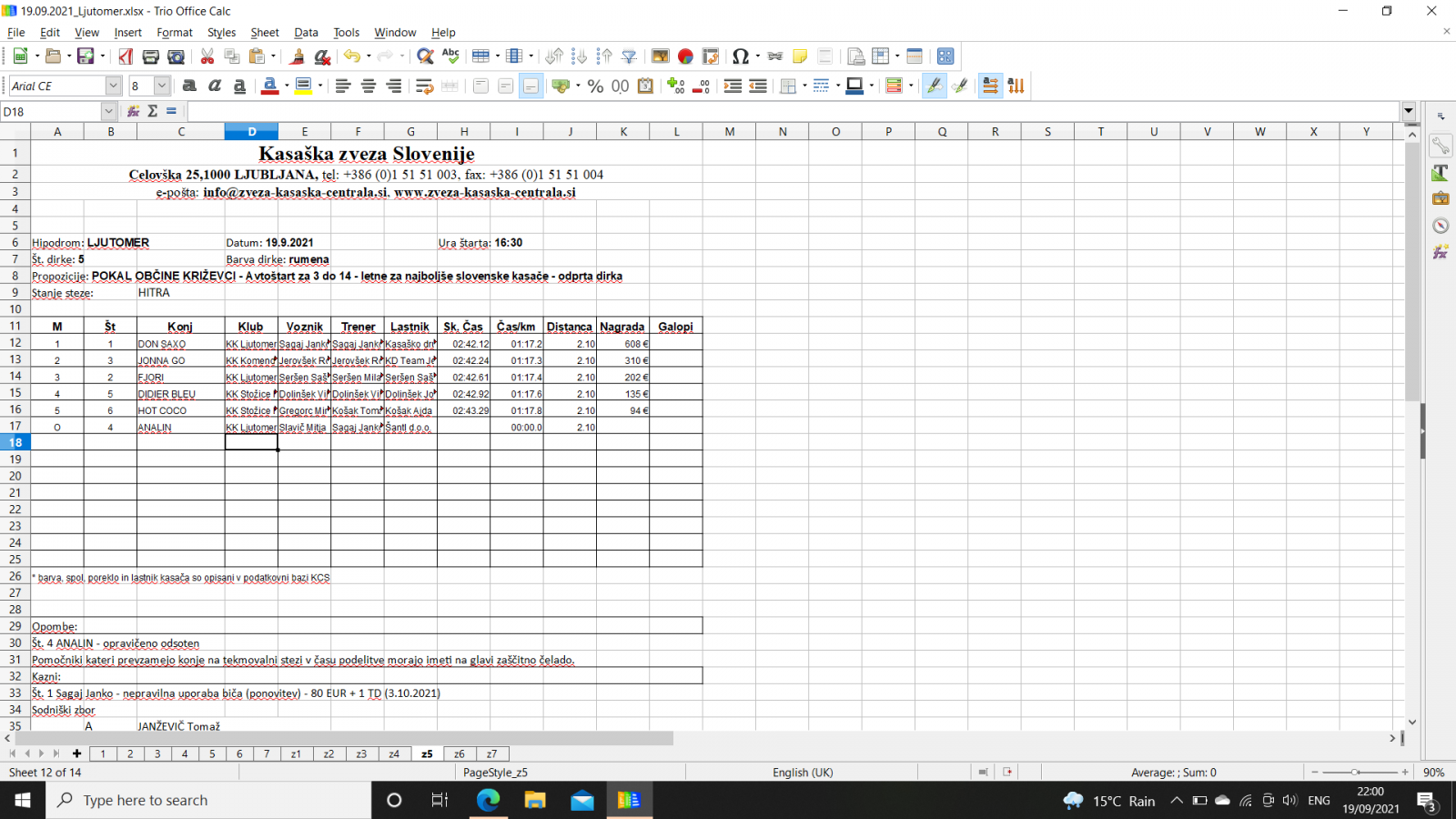 Na spodnjih povezavah, najdete sodniške rezultate iz Ljutomera, 12. 9. 2021.