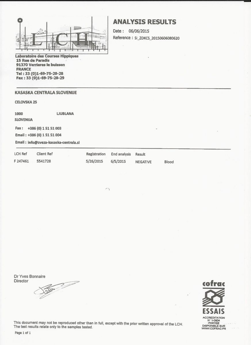 V prilogi lahko najdete rezultate doping testov iz dirk 31. 5. 2015 v Stožicah in 24. 5. 2015 v Ljutomeru.