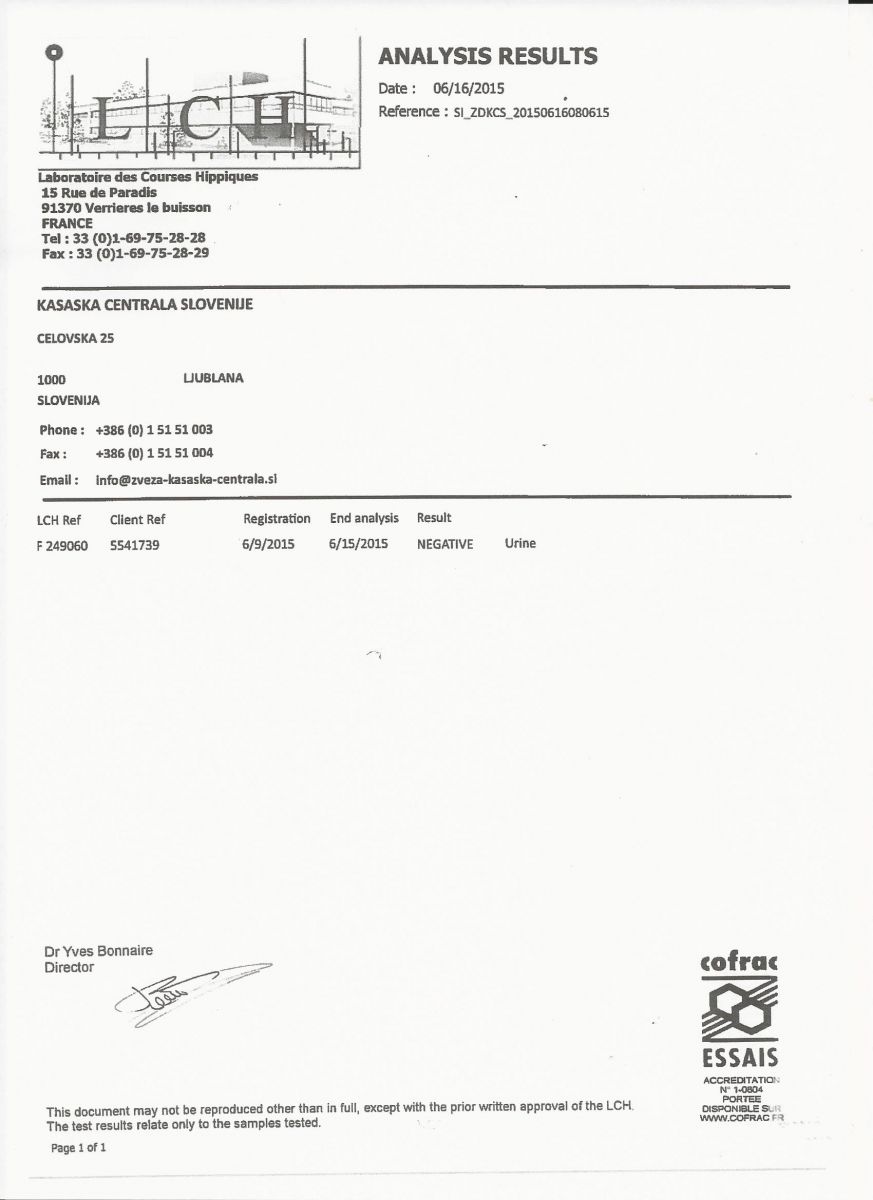 V prilogi lahko najdete rezultate doping testov iz Krškega 7. 6. 2015