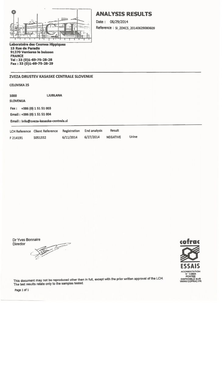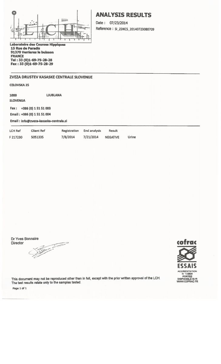 Na Centralo smo prejeli rezultate doping testov za maj, junij in julij. Zaradi nesporazuma z laboratorijem glede plačevanja testov, smo na teste čakali nekoliko dlje. Vsi odvzeti vzorci so bili negativni, rezultate pa najdete spodaj.